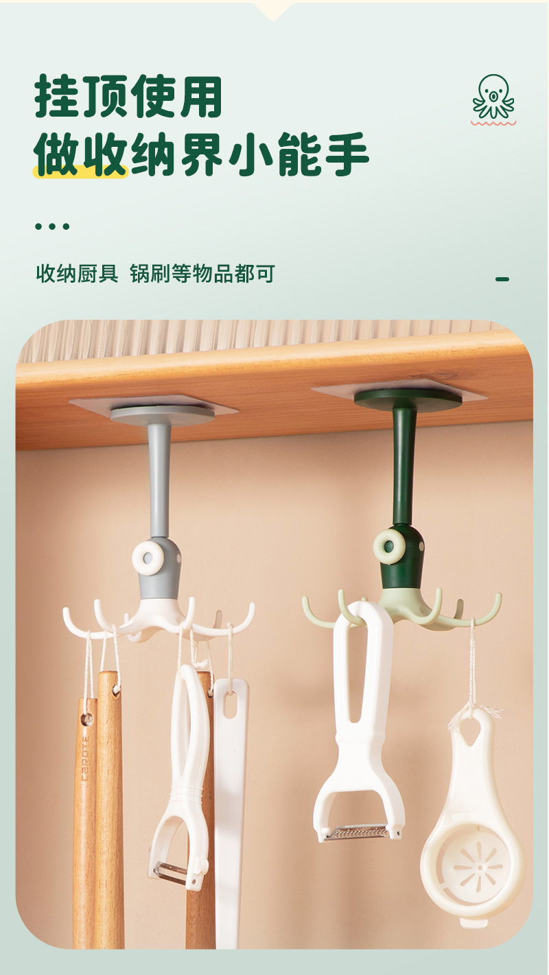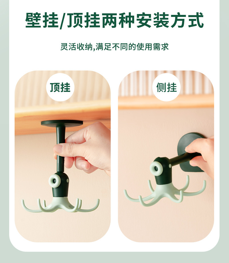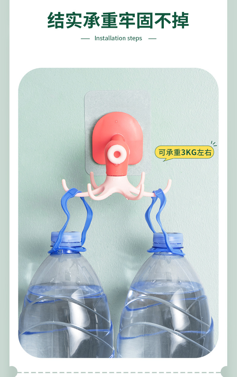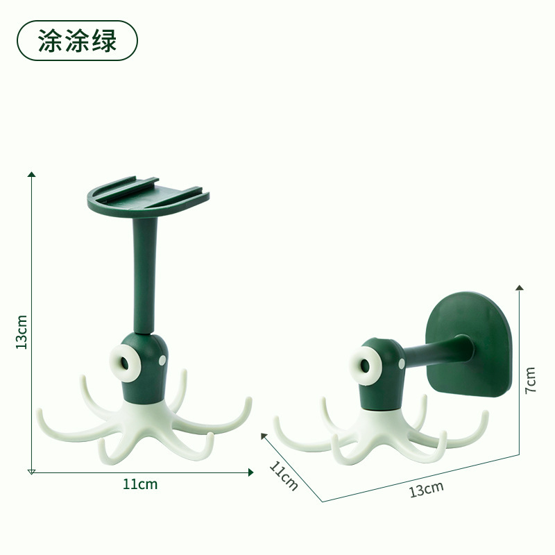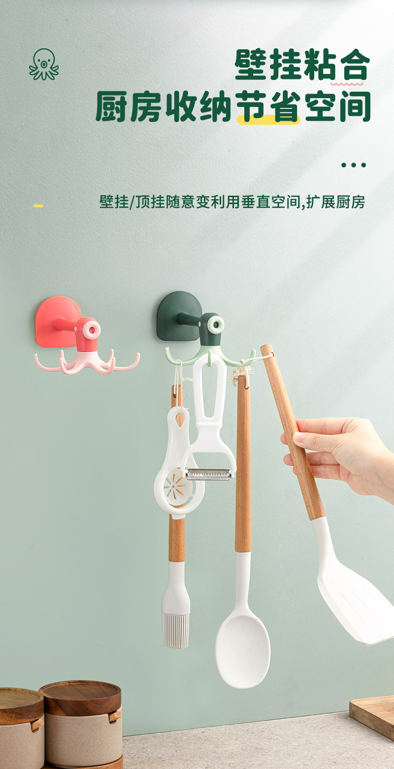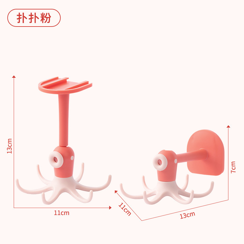 Cute octopus hook 6-Claw hook punch free paste rotatable multifunctional cartoon octopus small hook sticky hook