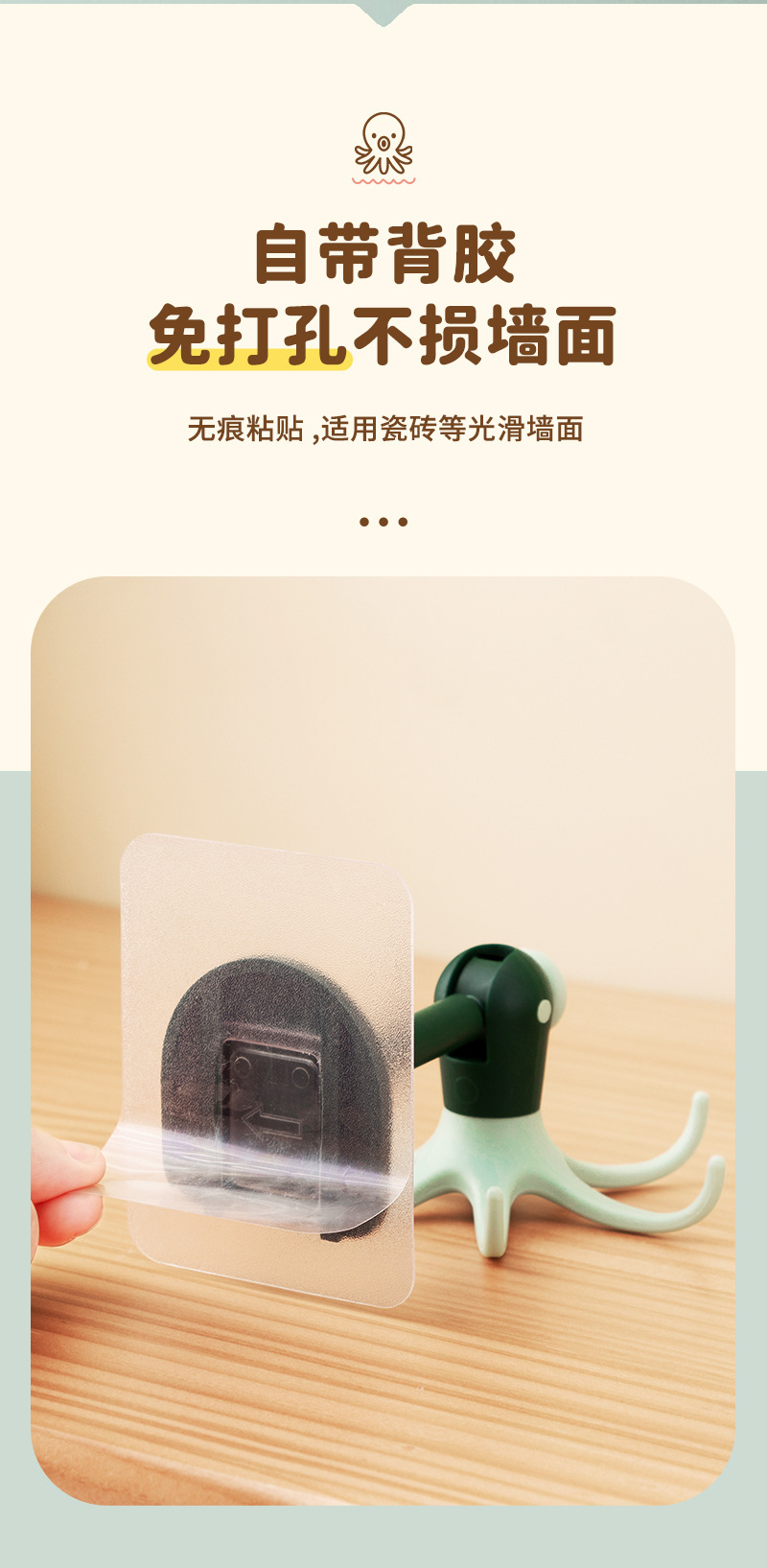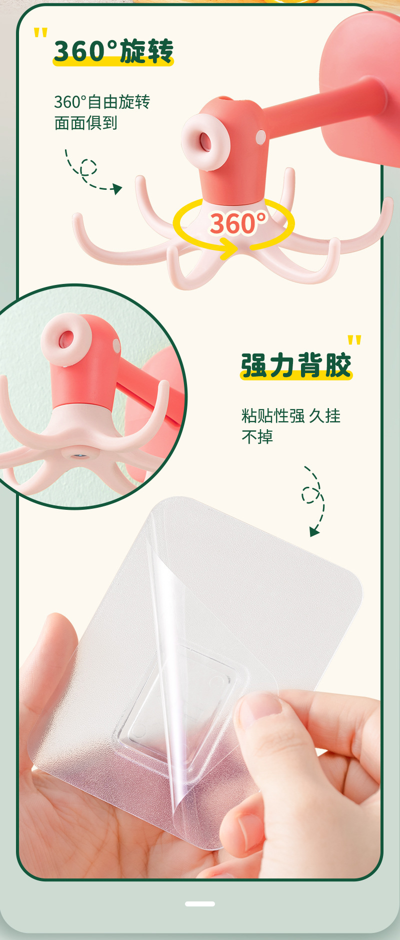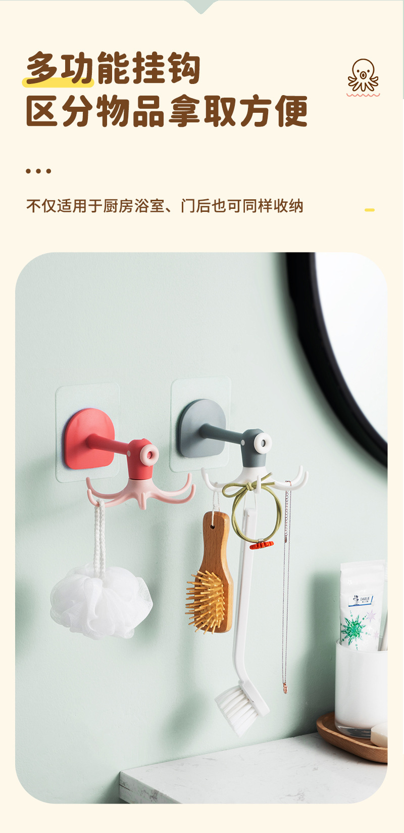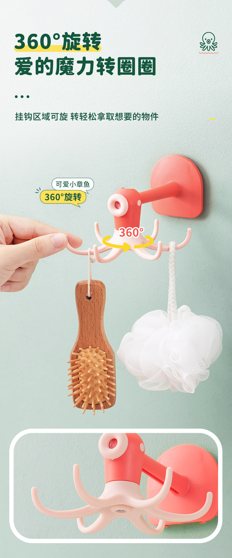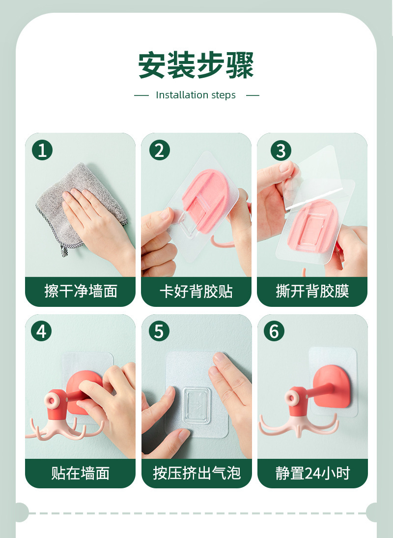Cute octopus hook 6-Claw hook punch free paste rotatable multifunctional cartoon octopus small hook sticky hook