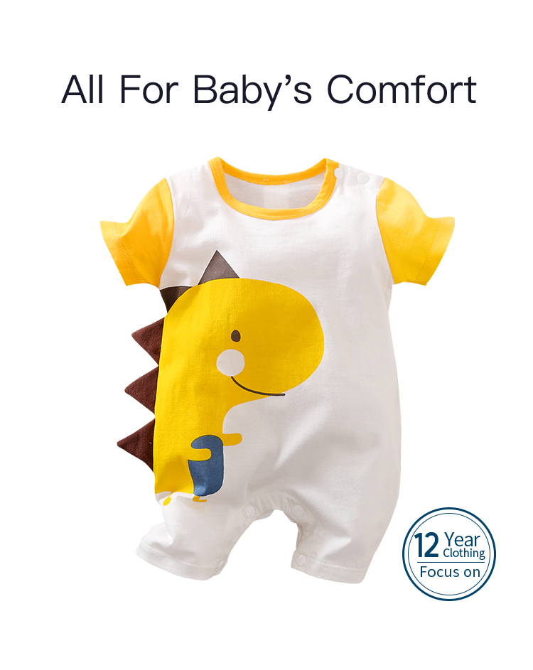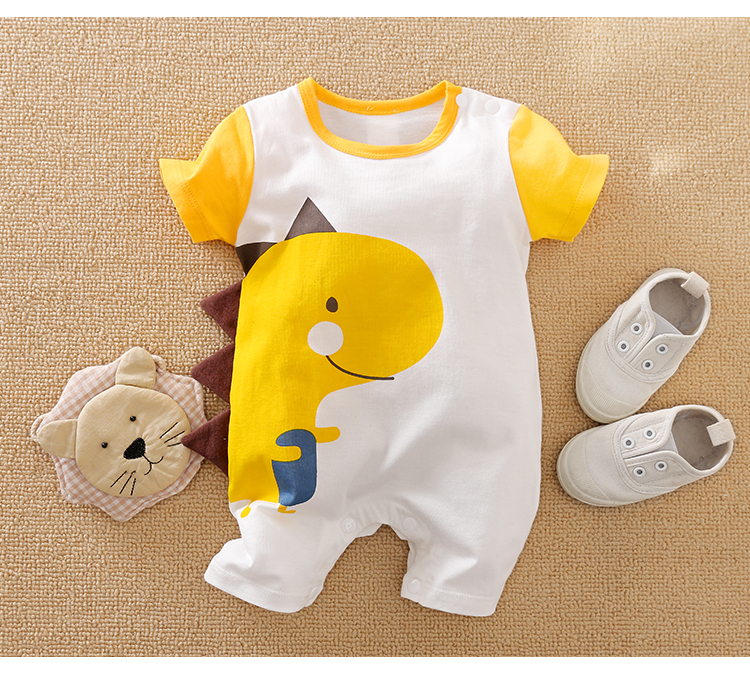 0-18 Baby Jumpsuit Cute Cartoon 3d Dinosaur Printed Cotton Comfortable Casual Soft Round NeckSummer ShortSleeved Newborn Clothes