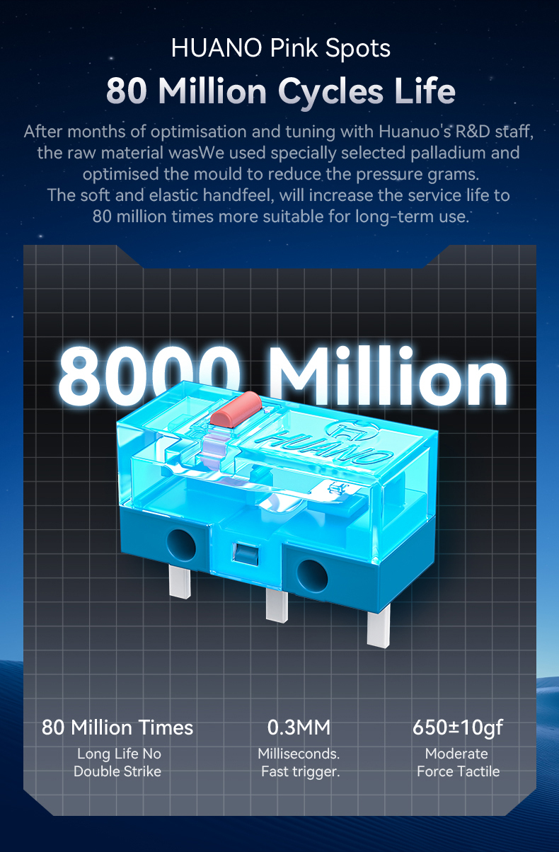 - HUANO Switches & TTC Encoder: With over 80 million clicks guaranteed, enjoy fast rebounds and precision with high-end HUANO switches and a TTC scroll wheel encoder.