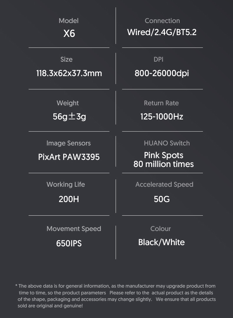 - Ultra-Light 55g Design: Crafted for speed and control, the X6 is lighter than most other mice, reducing wrist fatigue during long gaming sessions.