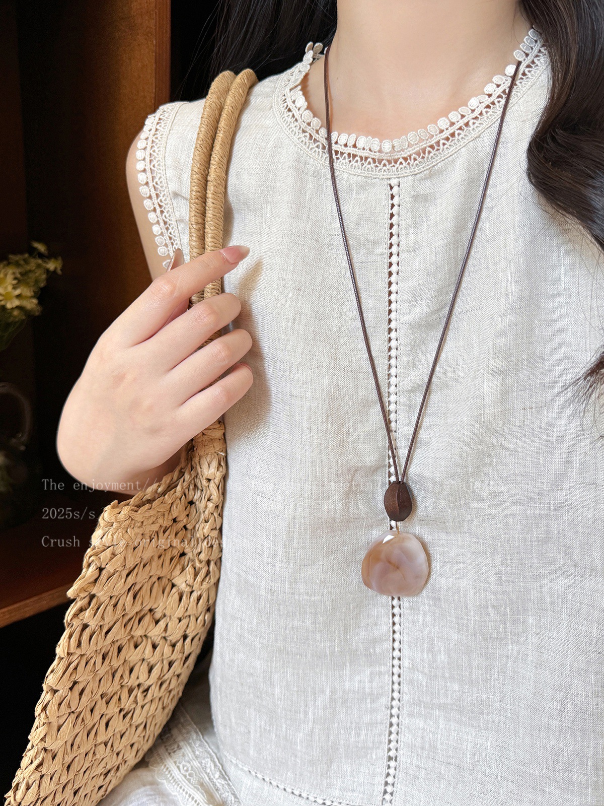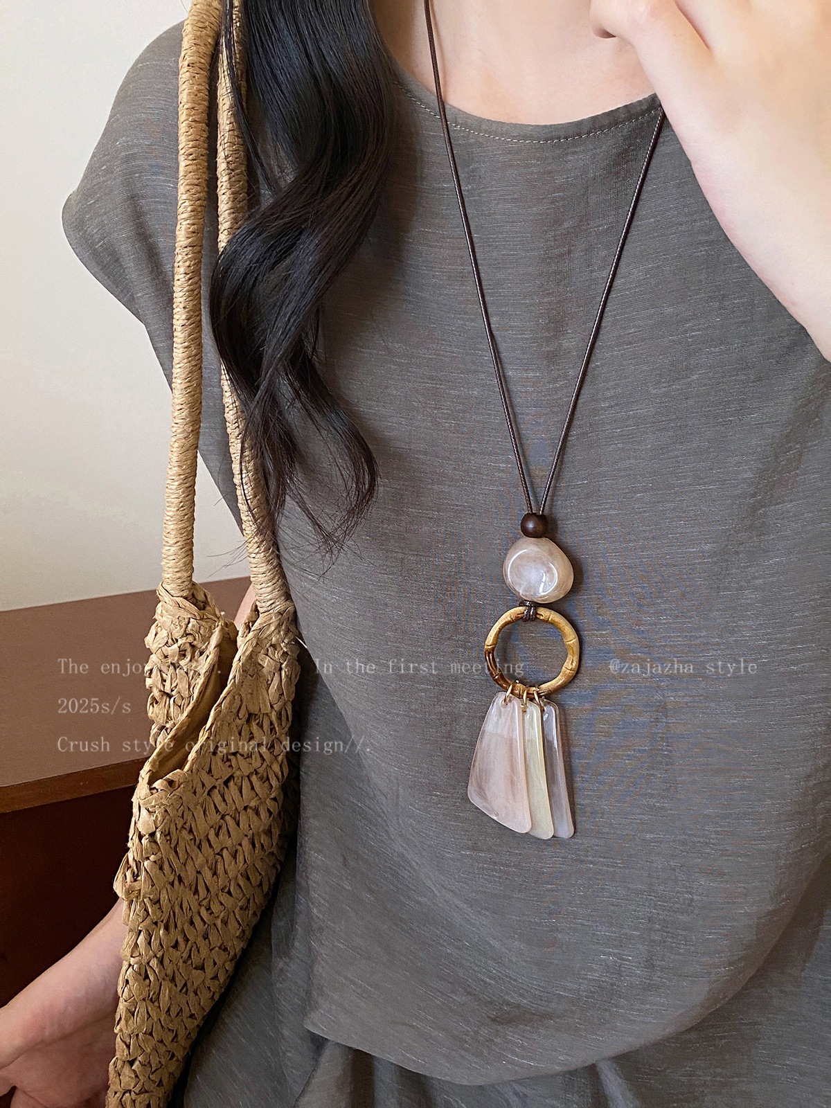 Bring your own aura ~ Maillard Brown blooming long necklace women’s early autumn halter special-interest design sweater chain accessories