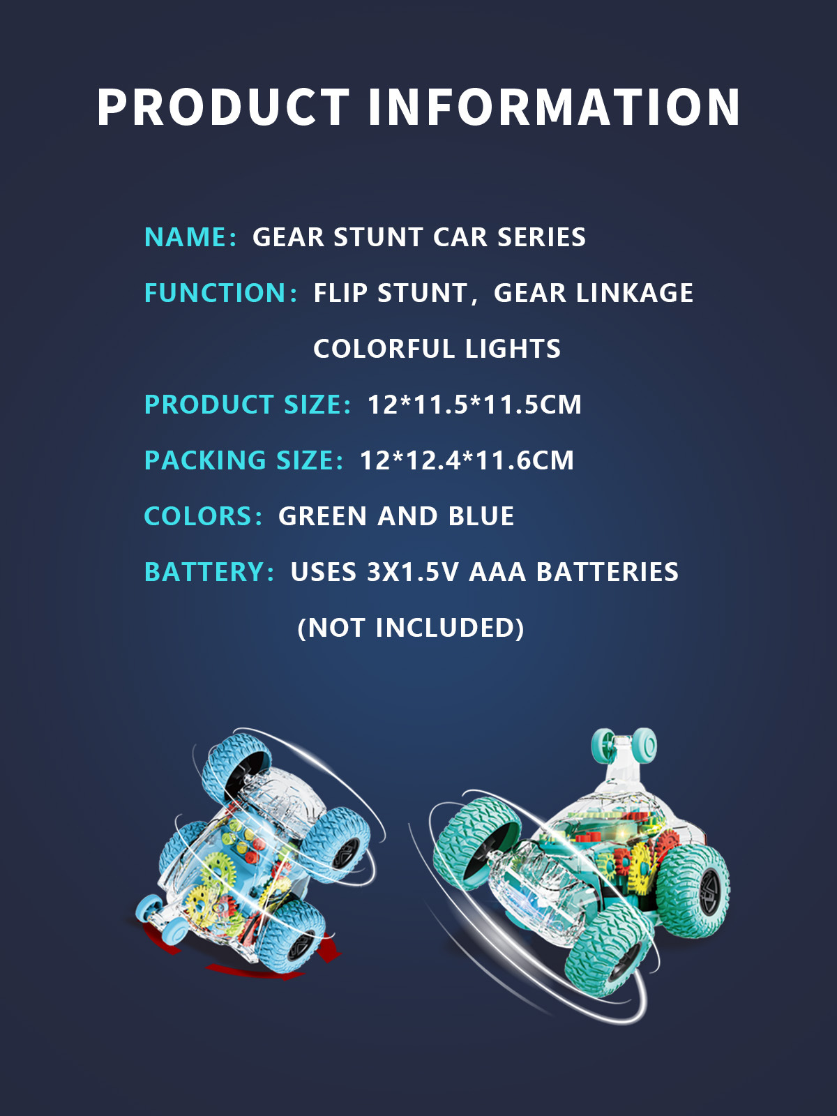 | Color | Blue-remote control gear dump truck, Green-remote control gear dump truck, Blue-electric cone dump truck, Green-electric cone dump truck, Red-Electric Stunt Dipper, Green-electric stunt dump truck |