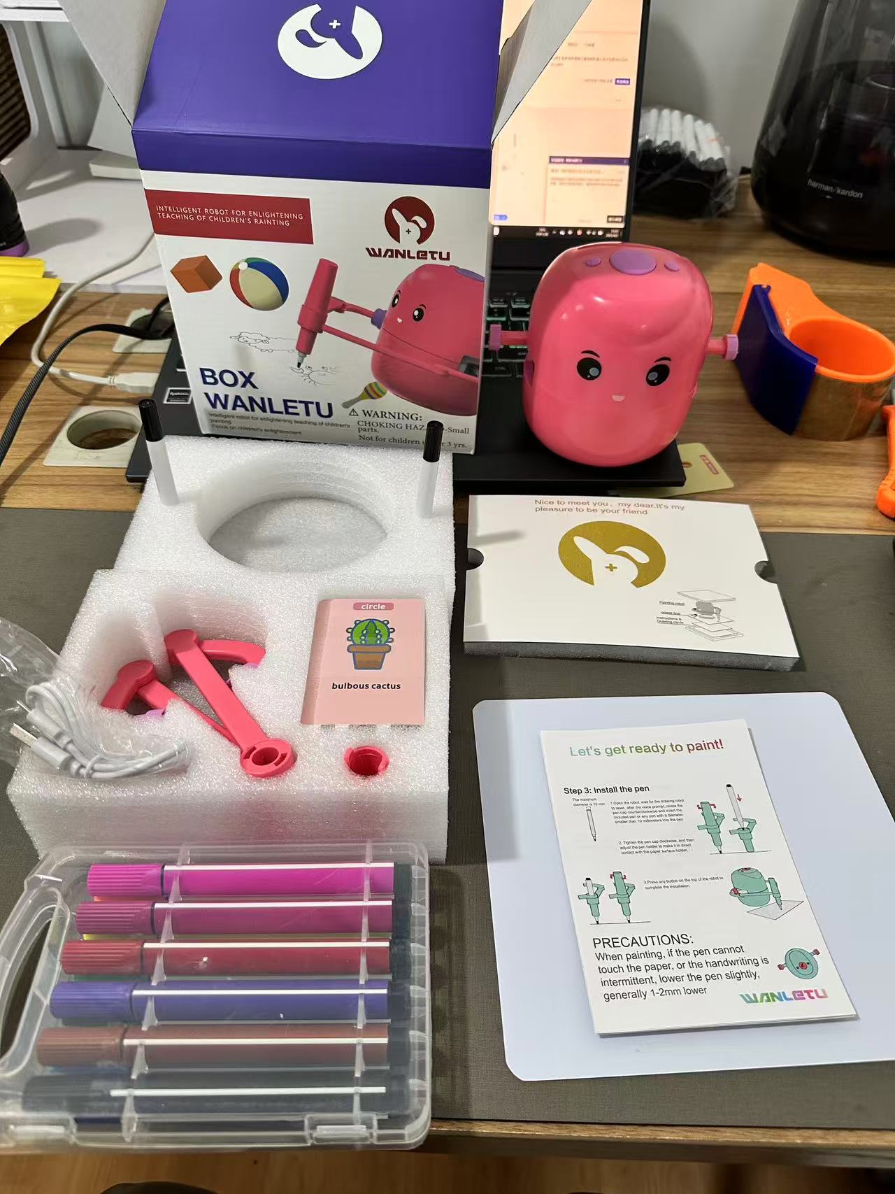 | Specifications | 1 Special brush for robot, 6 Special brushes, crayon 12 (12 colors in a box), Robot basic painting card [100 painting card]], Robot upgraded painting card [112 painting card 40 words Card]], Robot all picture cards [252]], Other accessories [consultation]], Cross-border 150 Picture Cards 5 brushes |
