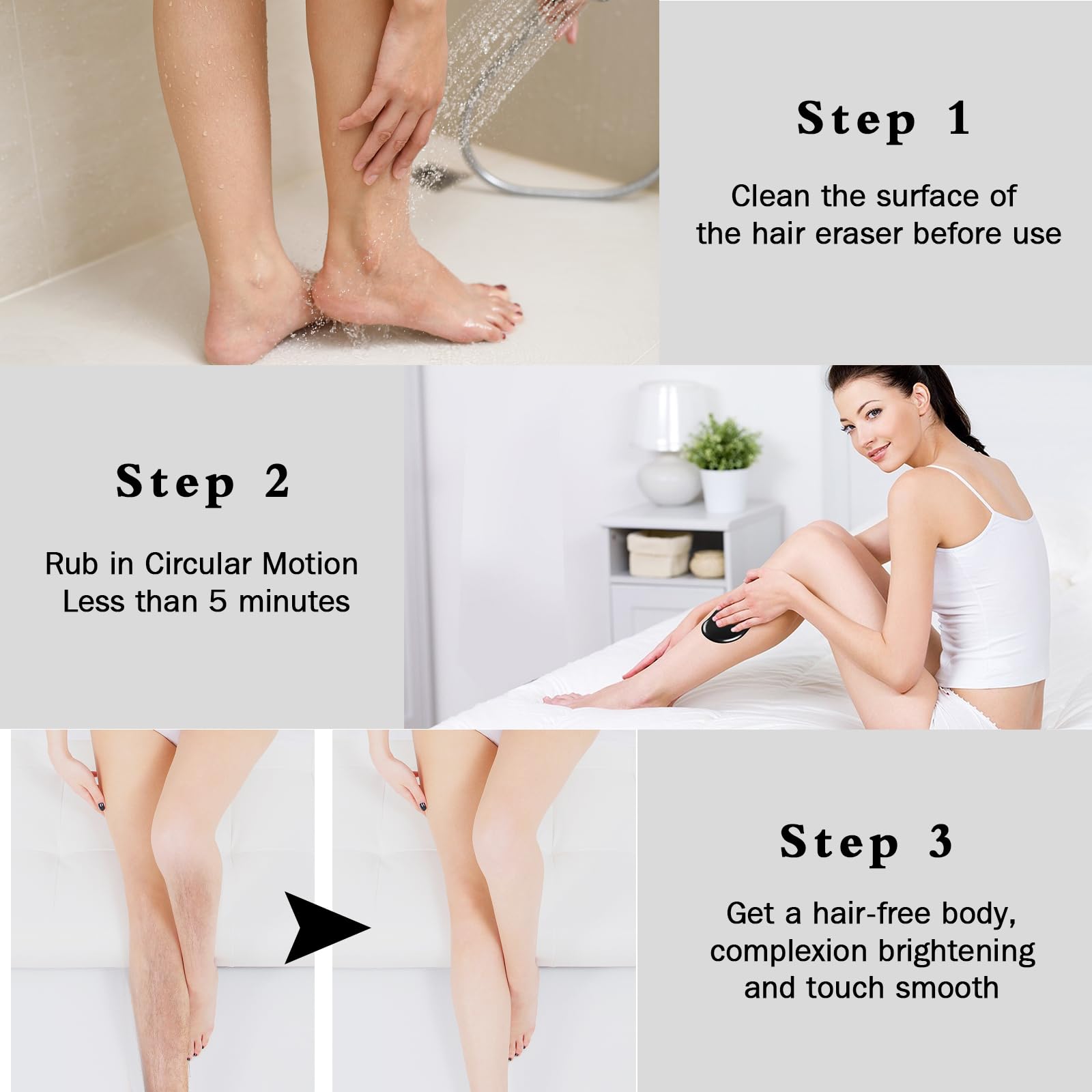 Crystal Hair Eraser for Women and Men, Reusable Crystal Hair Remover Magic Painless Exfoliation Hair Removal Tool, Magic Hair Eraser Device for Back Arms Legs (Black)