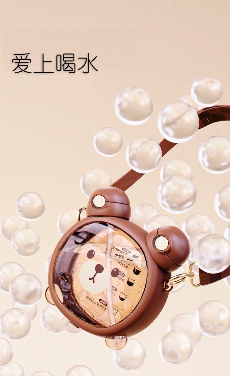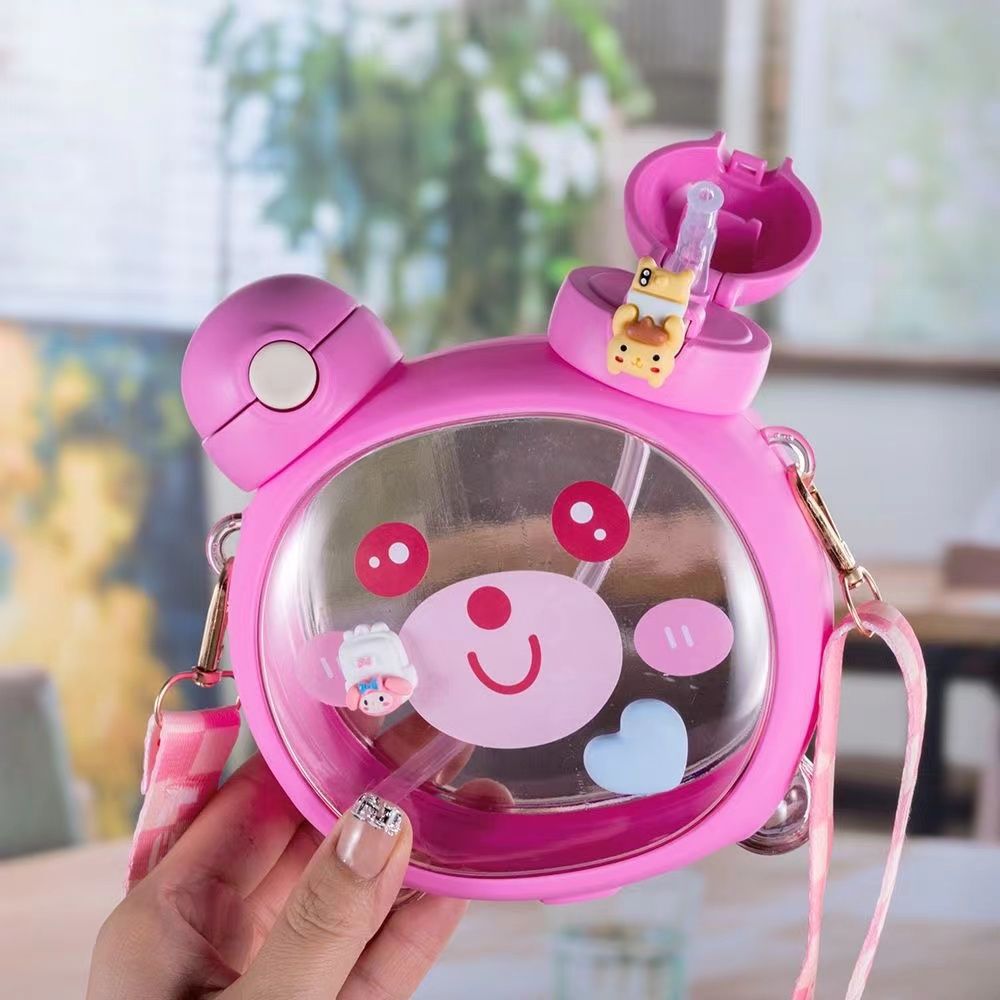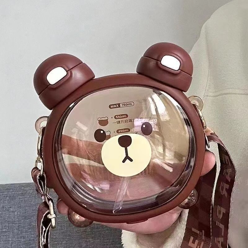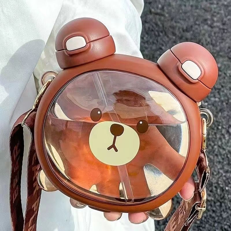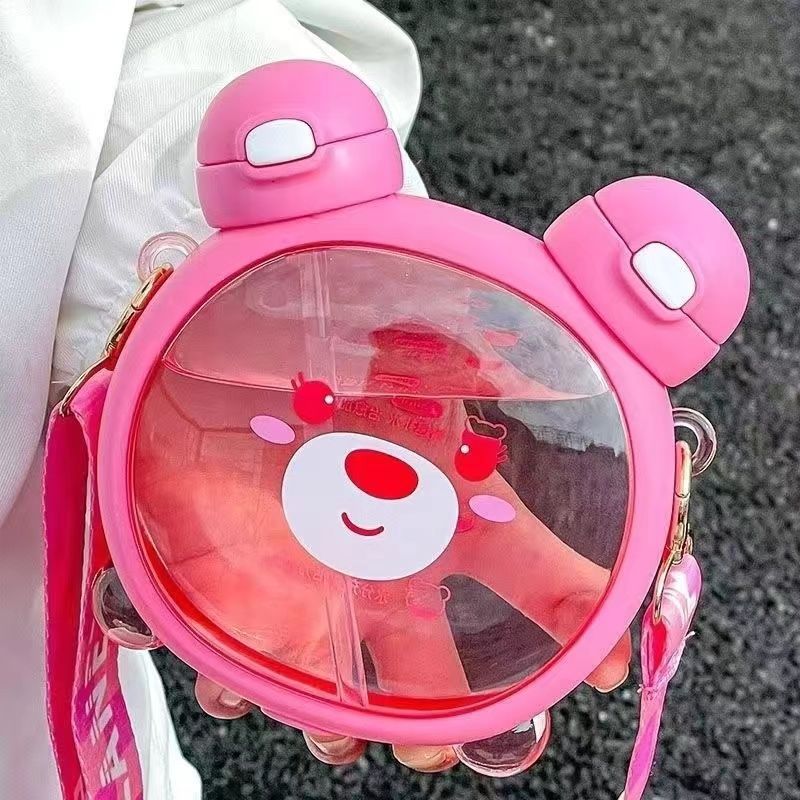 Cute bear water cup for girls good-looking Cup children’s cups Cup with straw summer student portable crossbody water bottle