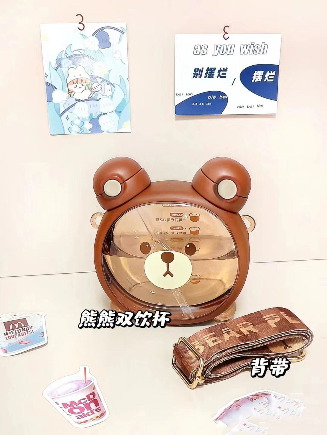 | Color | Cocoa Brown 750ml, Strawberry bear 750ml, Cocoa Brown strawberry powder [2 sets are more cost-effective]], Random small Cup (no gifts) |