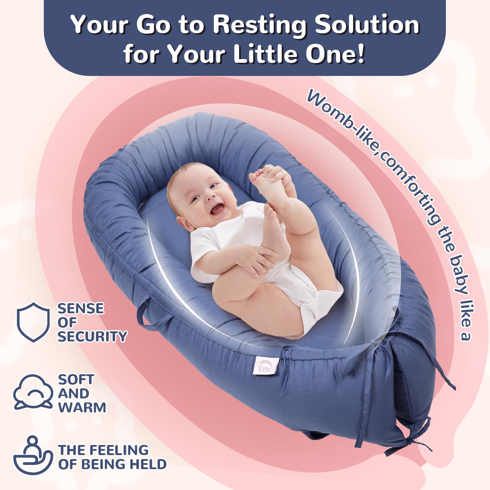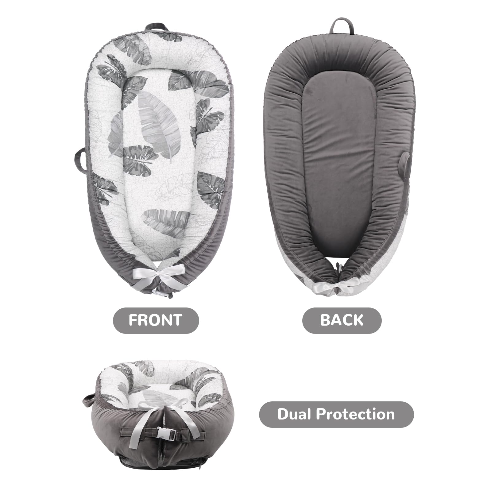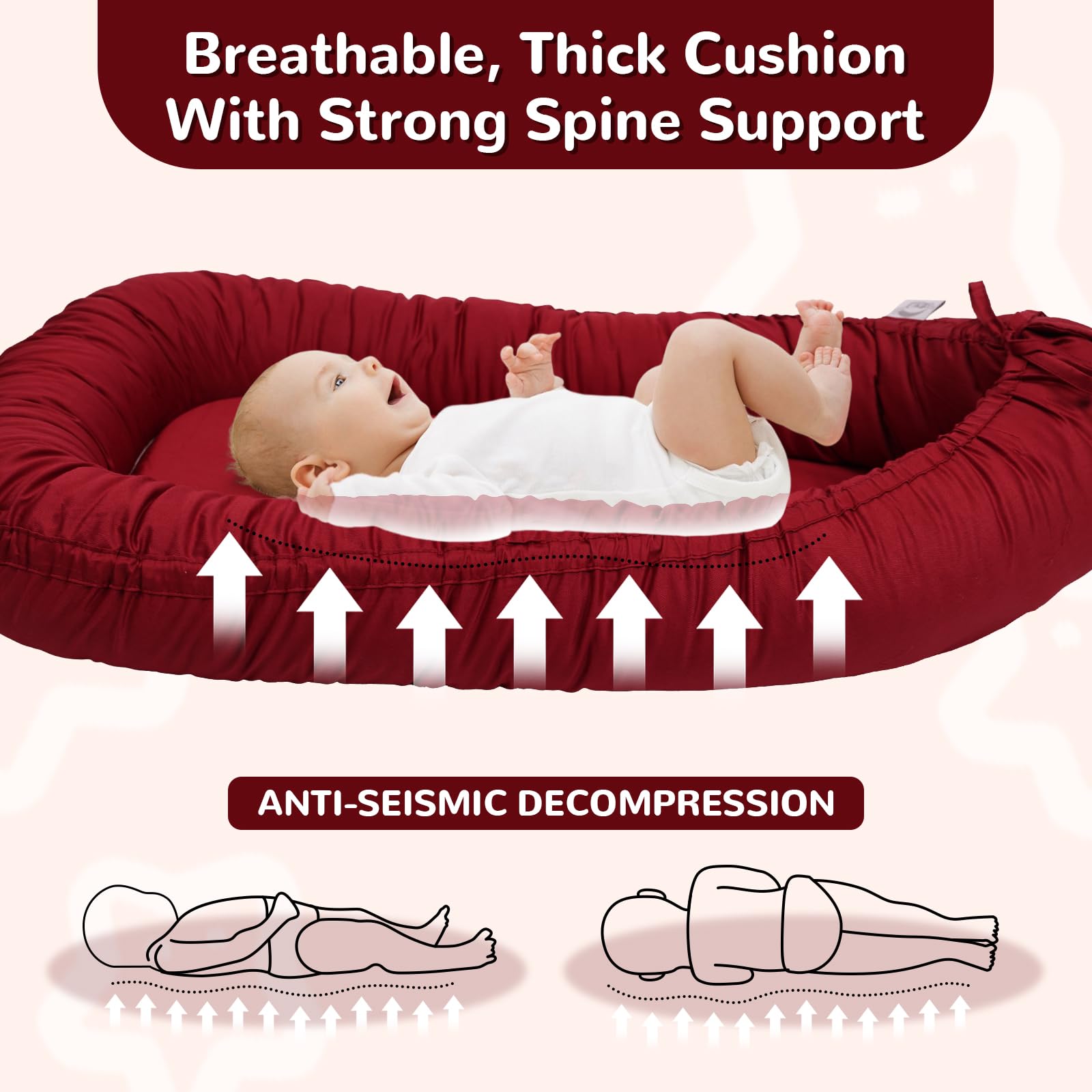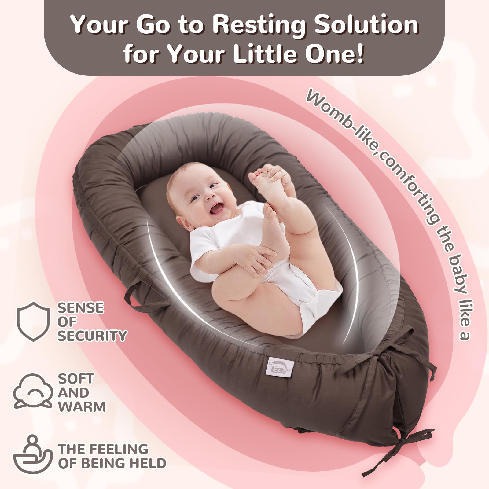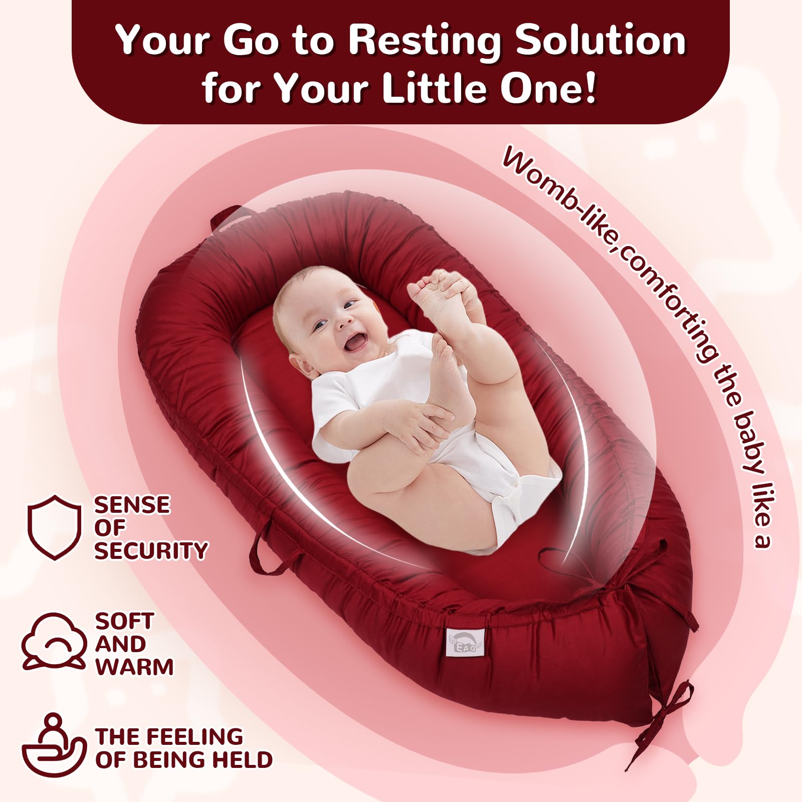 · 👼 SUPREME COMFORT DESIGN: Crafted from super soft and breathable cotton, it features a thick bumper for 360-degree protection and an upgraded thickened mattress. This mimics the womb’s coziness, perfectly supporting the baby’s back and spine development for sweet dreams anywhere, anytime.