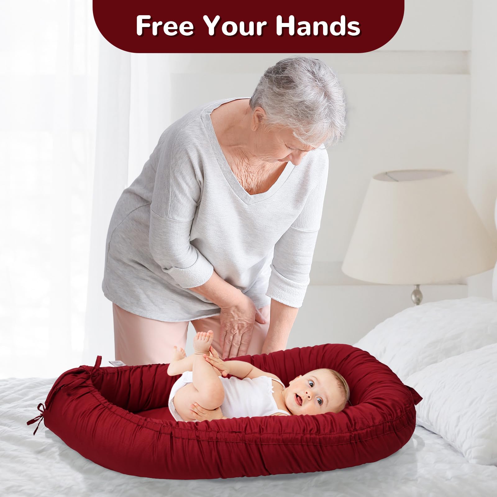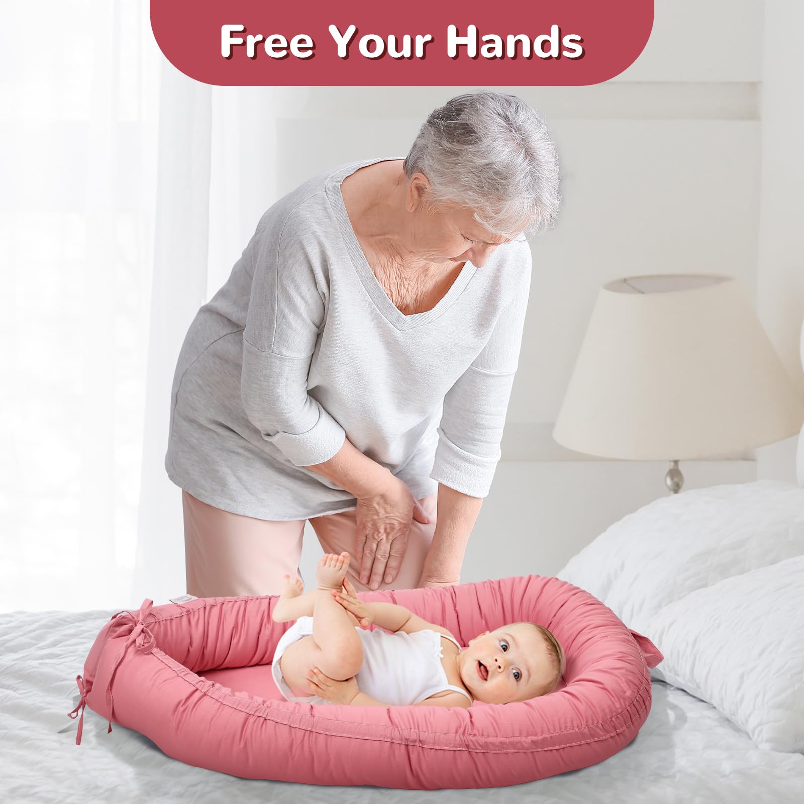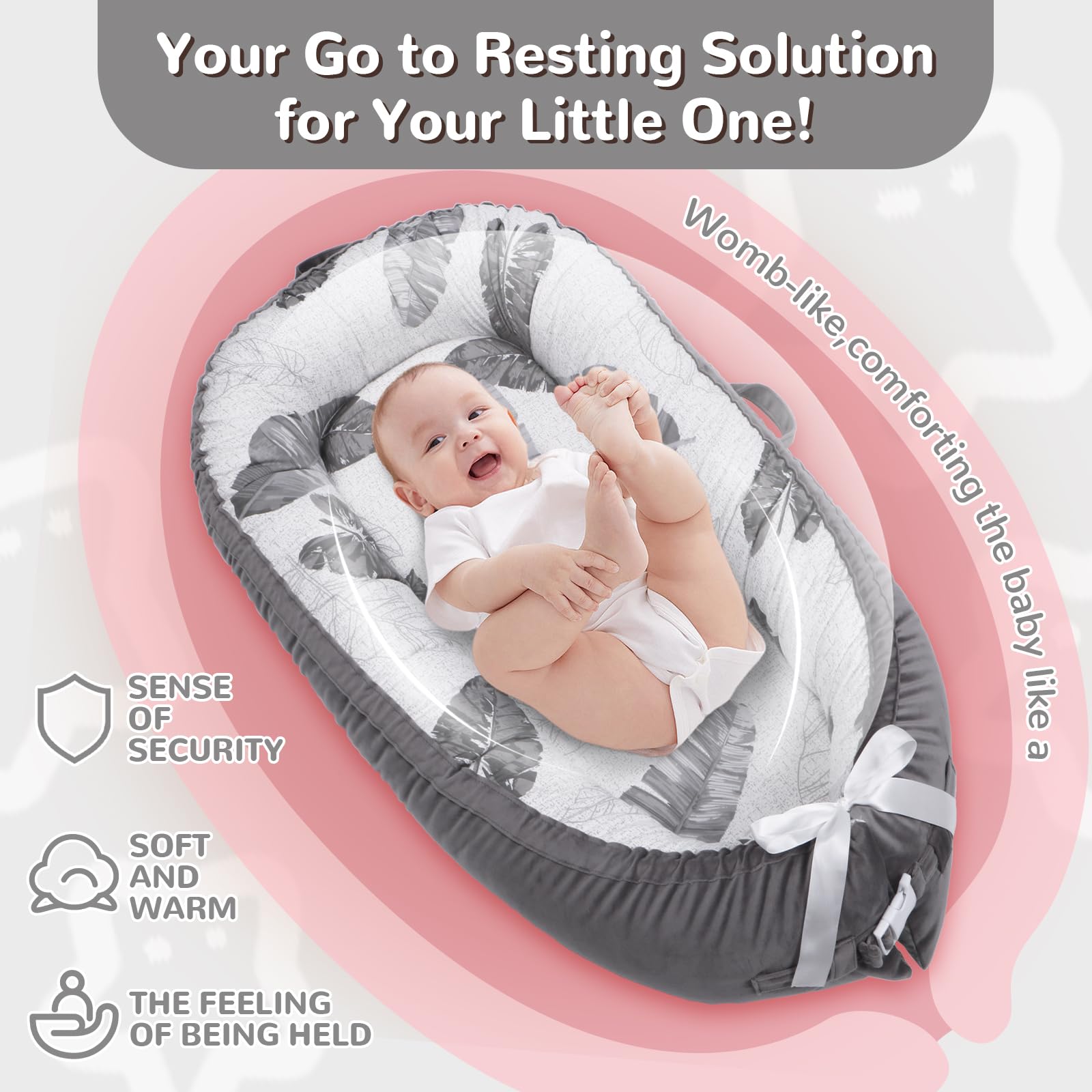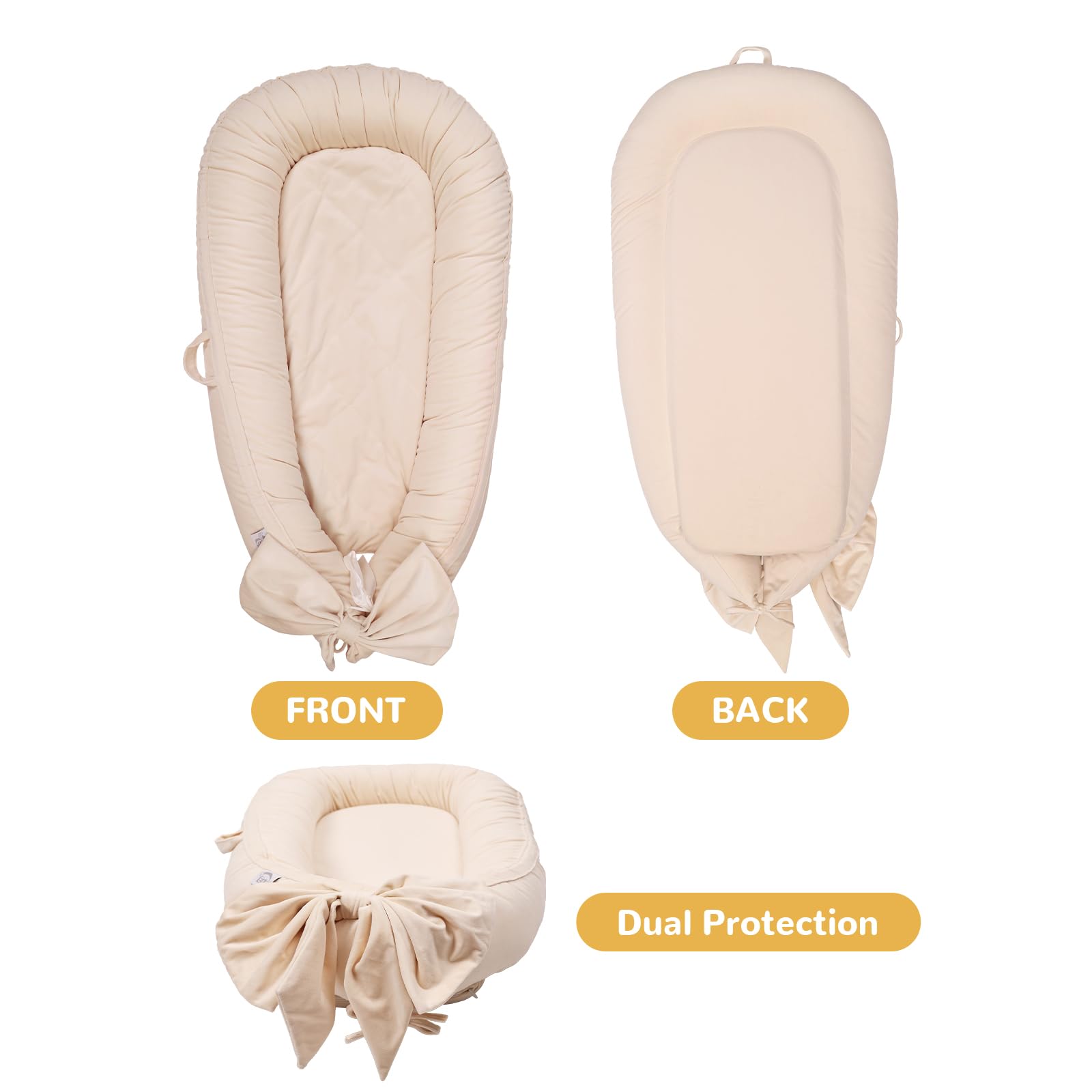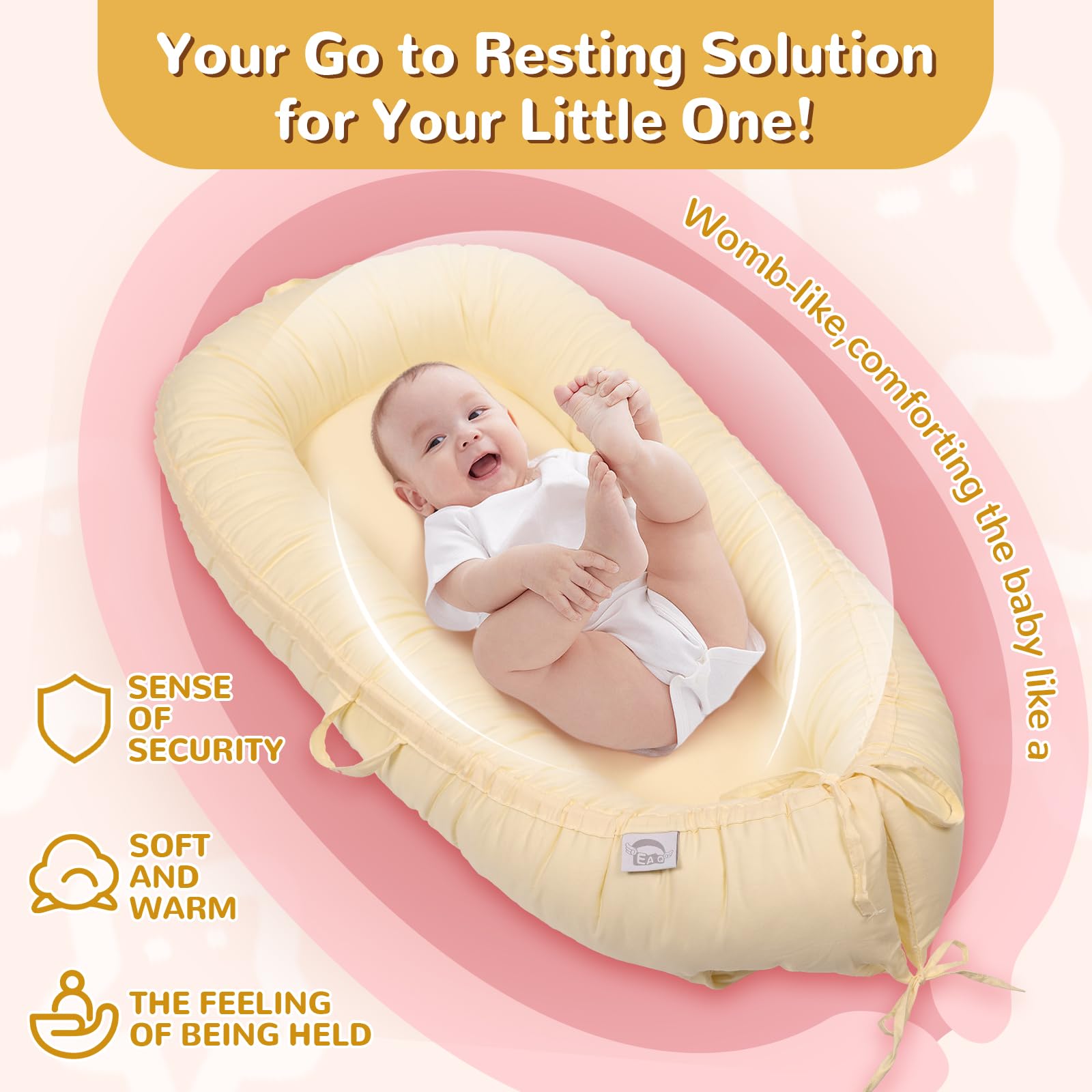 · 👼 SUPREME COMFORT DESIGN: Crafted from super soft and breathable cotton, it features a thick bumper for 360-degree protection and an upgraded thickened mattress. This mimics the womb’s coziness, perfectly supporting the baby’s back and spine development for sweet dreams anywhere, anytime.
