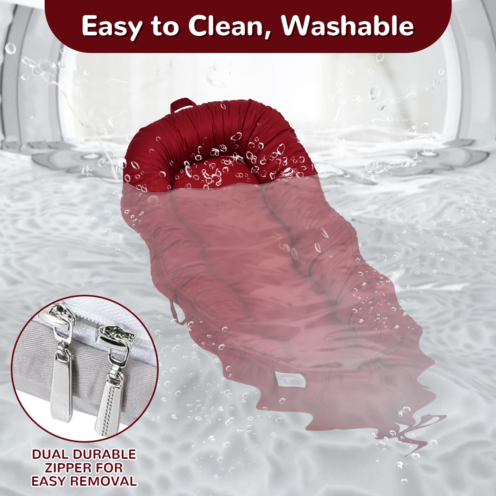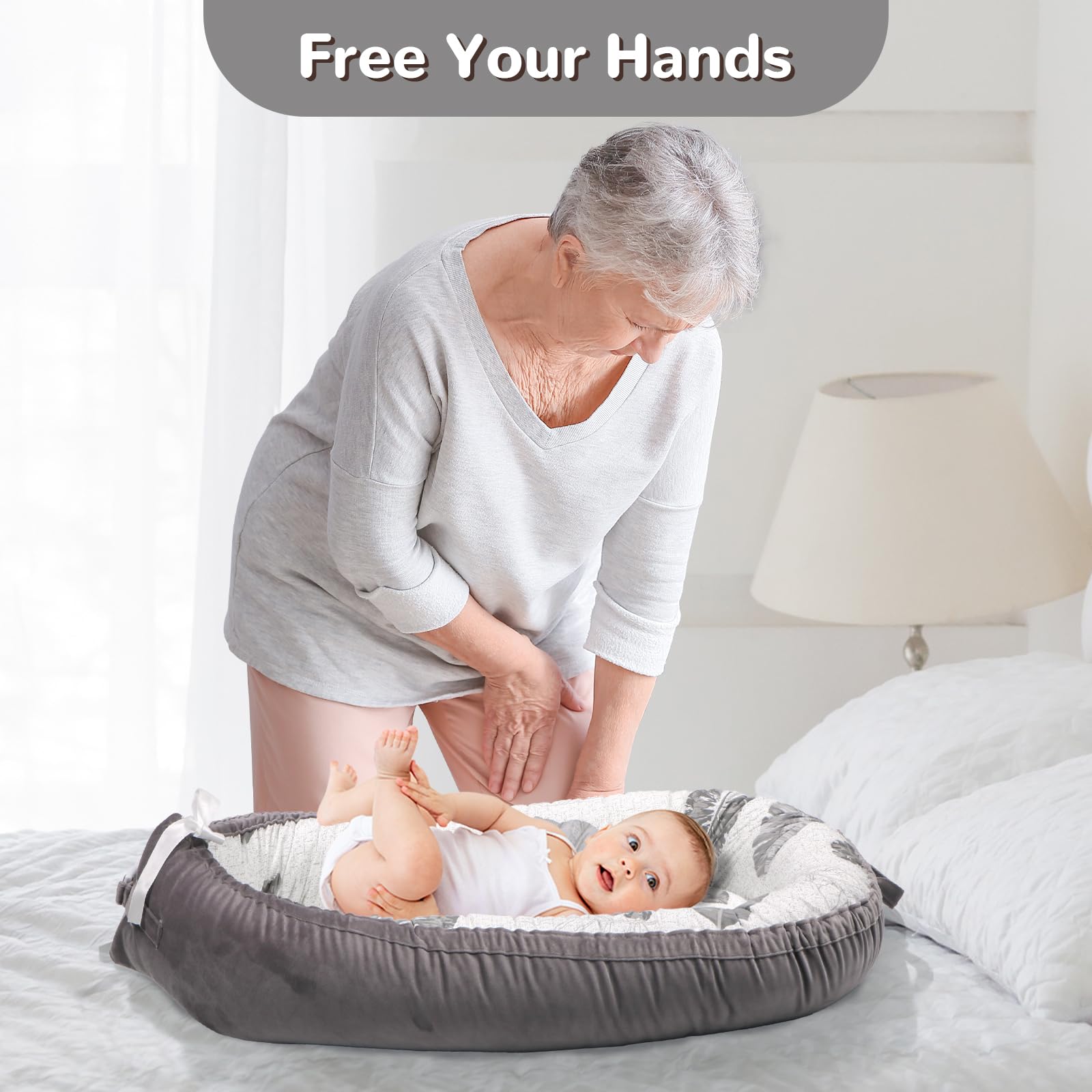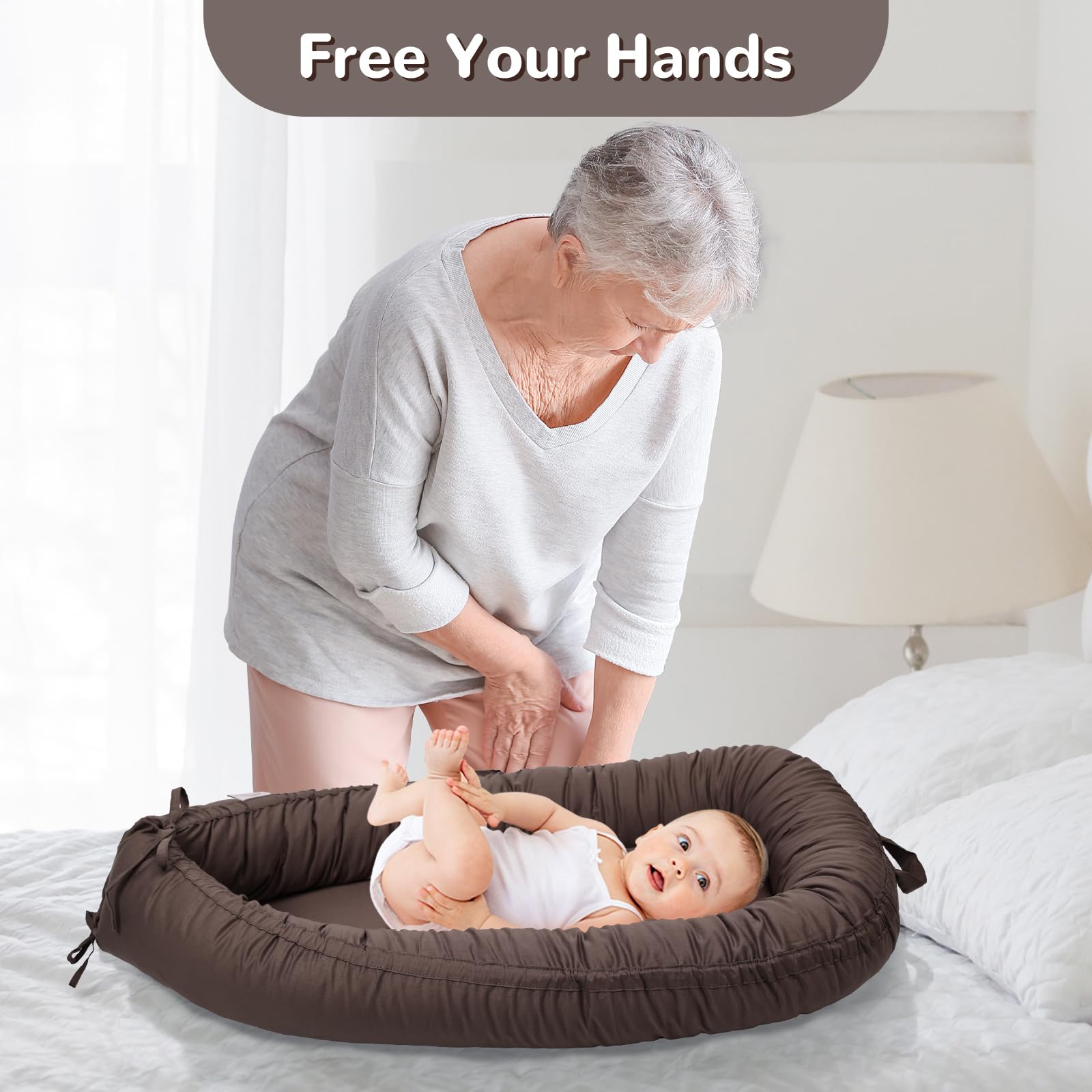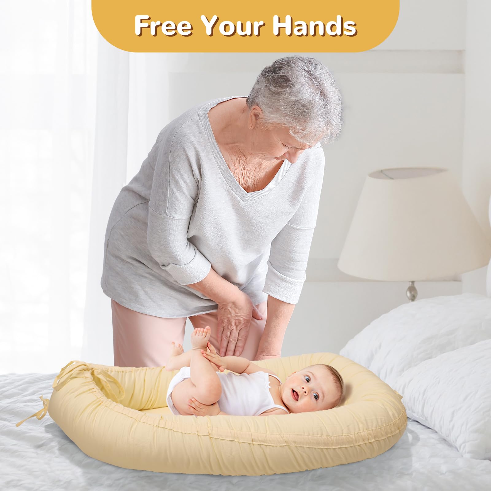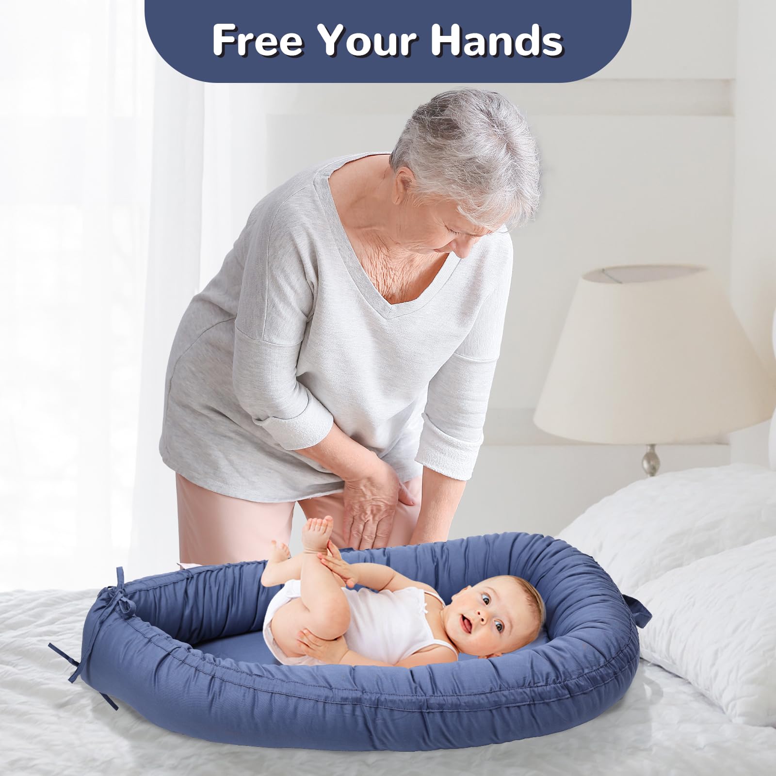 · 👼 SUPREME COMFORT DESIGN: Crafted from super soft and breathable cotton, it features a thick bumper for 360-degree protection and an upgraded thickened mattress. This mimics the womb’s coziness, perfectly supporting the baby’s back and spine development for sweet dreams anywhere, anytime.
