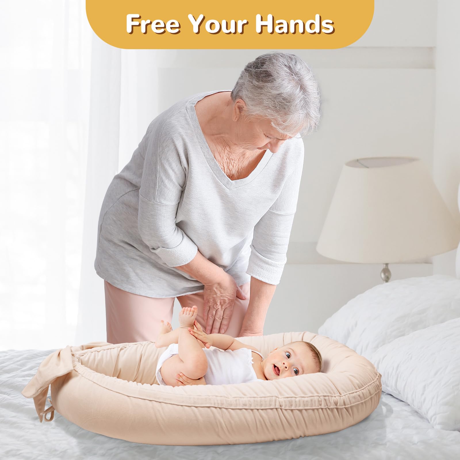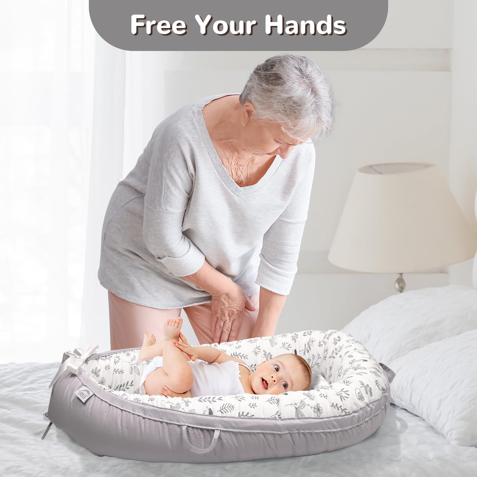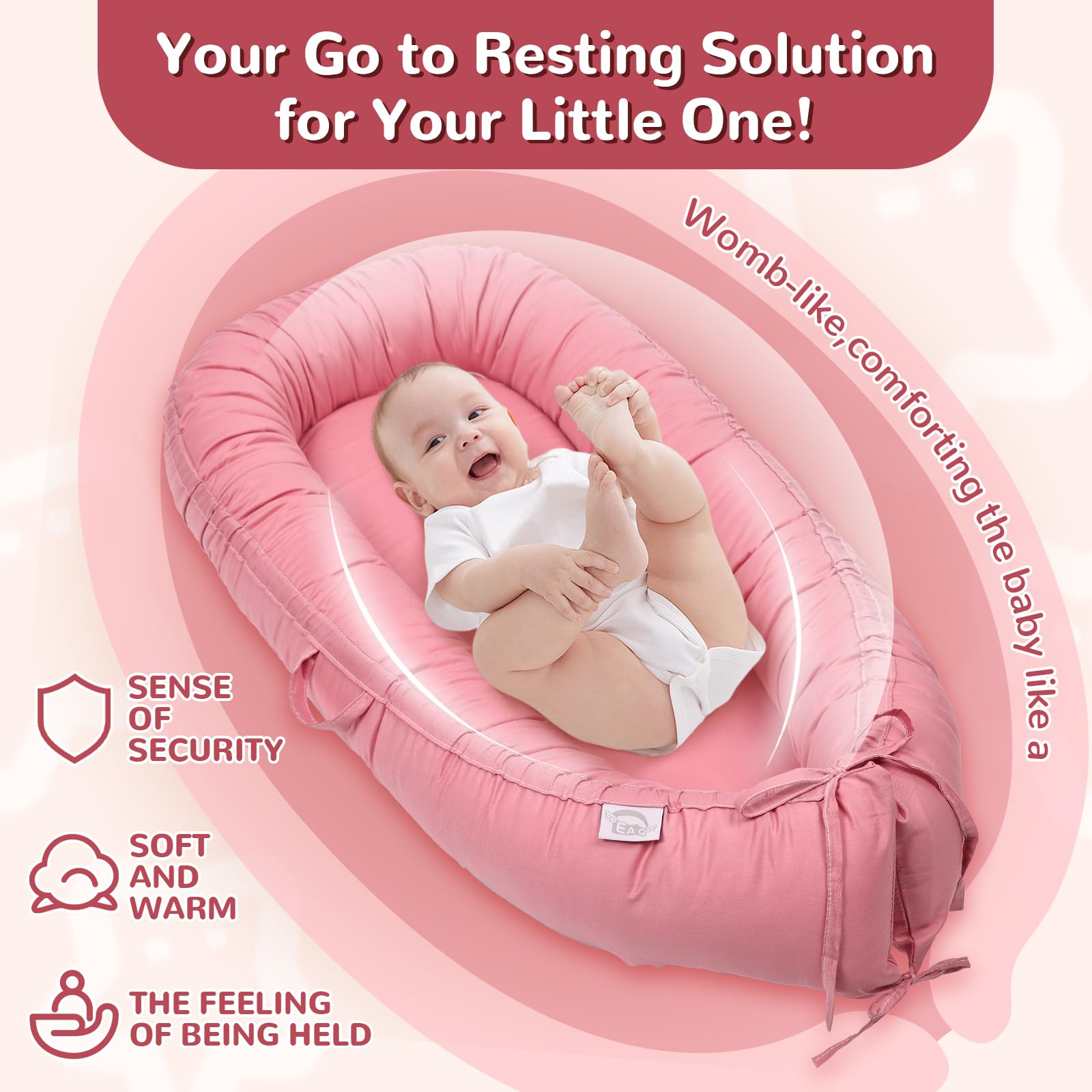 EAQ Baby Lounger, Snuggle Me Lounger, Portable Baby Nest Breathable & Soft, Organic Cotton Baby Lounger Pillow, Safe Baby Bassinet for Co-Sleeping, Nursery, Travel, Playtime