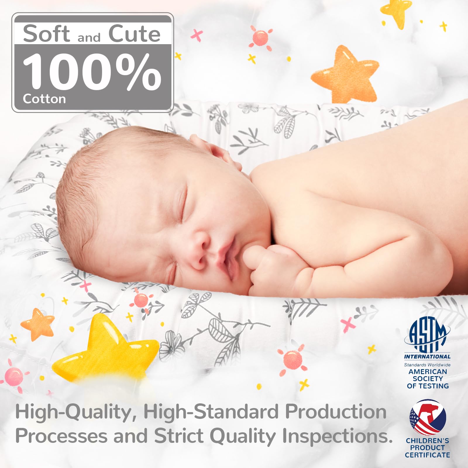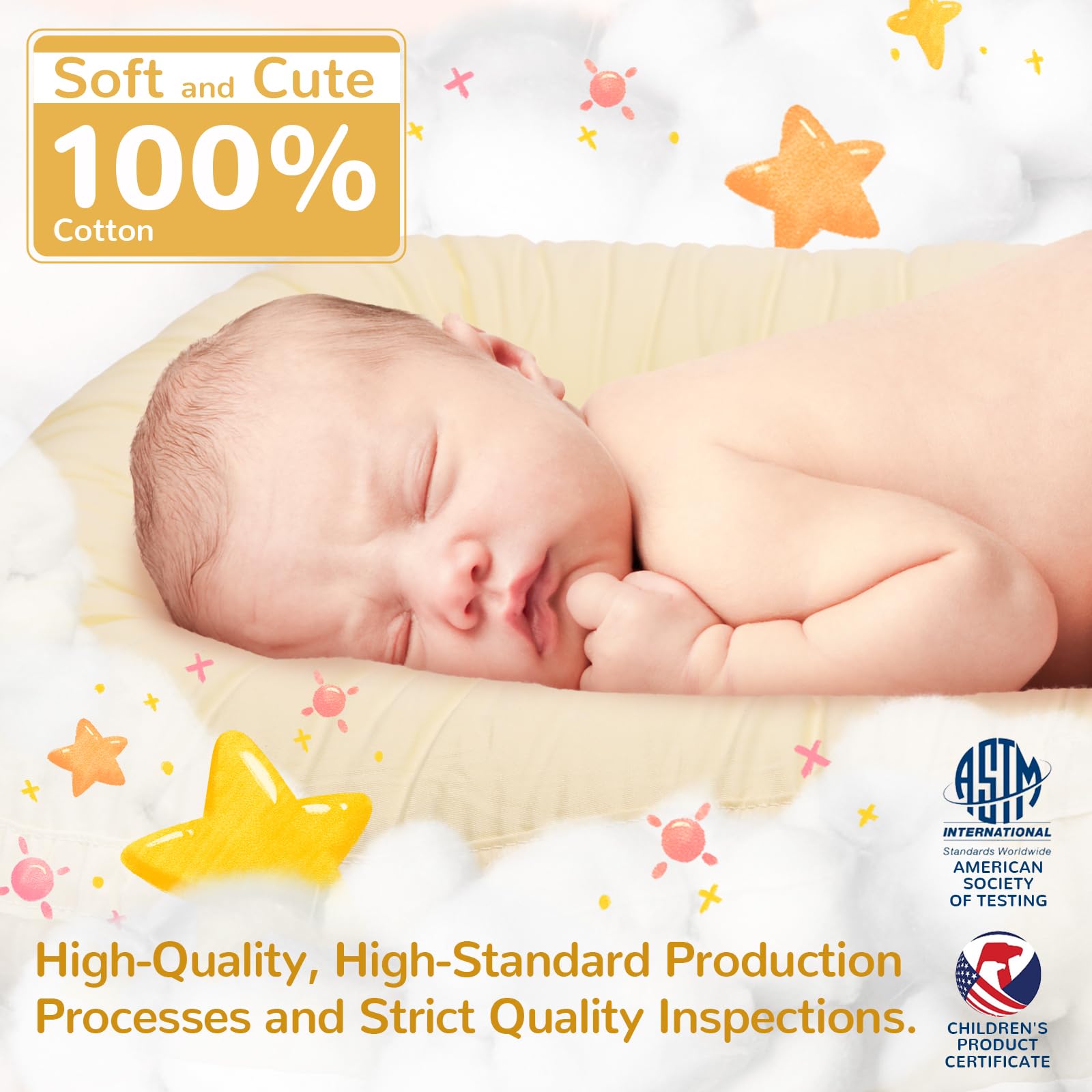 · 🍼 VERSATILE & PRACTICAL: With a double-sided usable design and adjustable elastic cord. Suitable for 0 – 24 months babies, the machine-washable high-quality cotton cover adds to its daily usability and convenience.