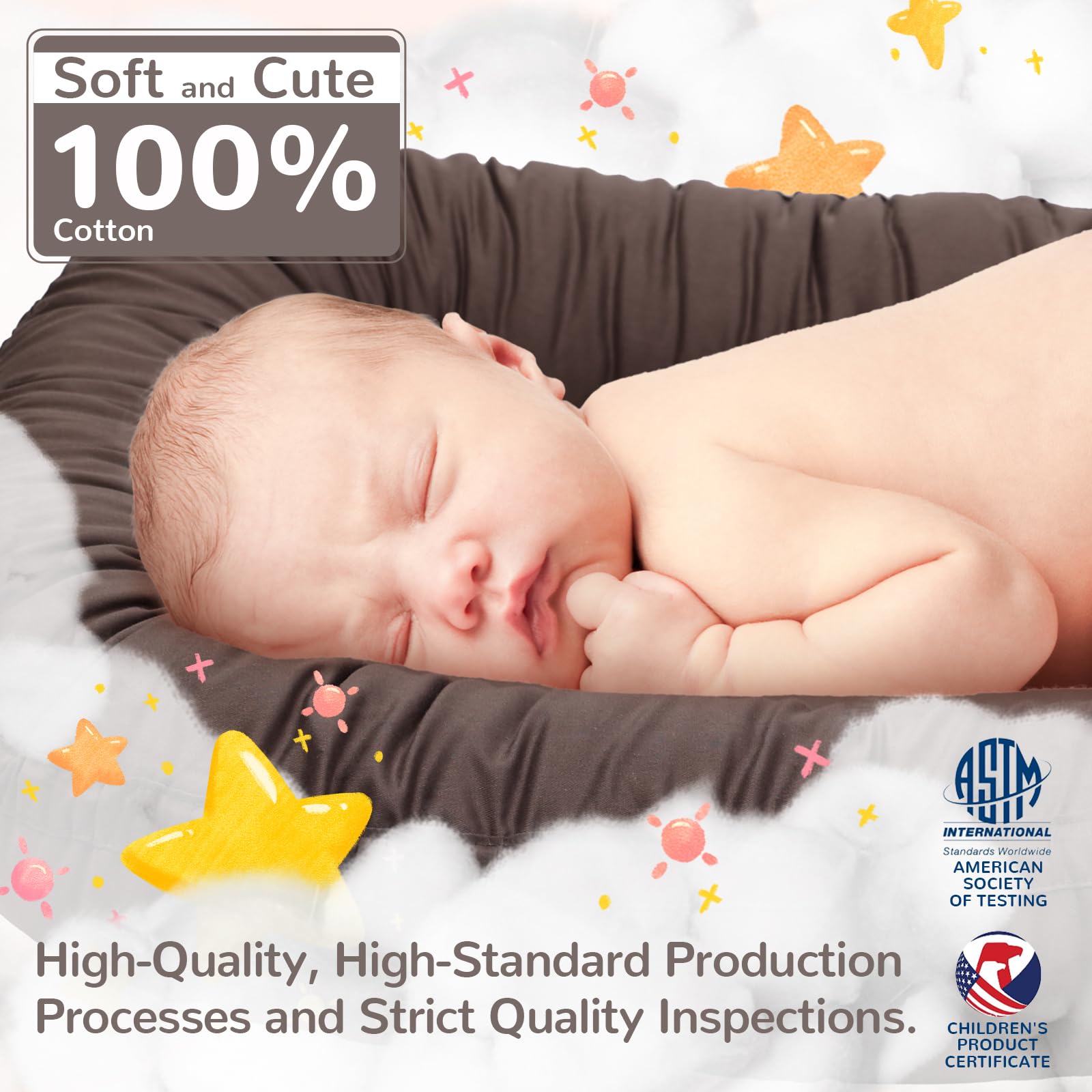 · 👶 PREMIUM SAFETY ASSURANCE: Baby lounger holds CPC, ASTM, and CPSIA certifications. Rigorously produced and inspected, it uses safe, eco-friendly 100% cotton fabric, ensuring a worry-free environment for newborns and allowing moms to use it with full confidence.