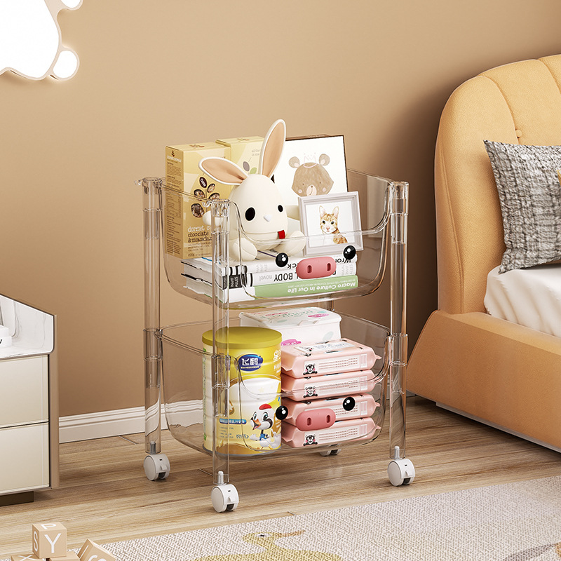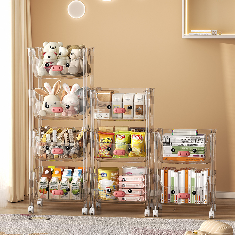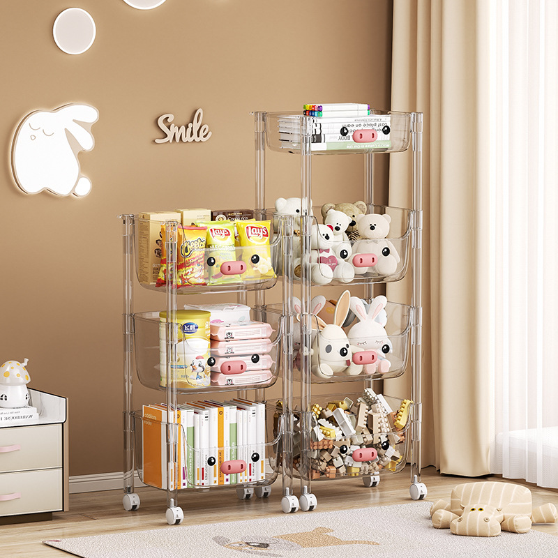 Internet celebrity transparent trolley rack Book Magazine children’s toy storage rack household multi-tier movable storage
