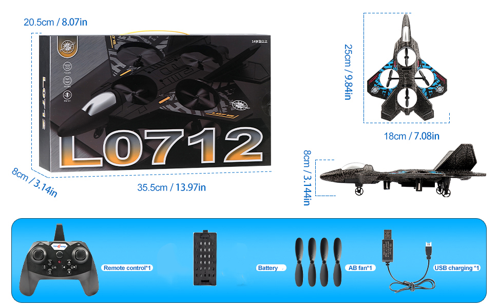 L0712 RC Plane 2.4G Remote Control Aircraft Gravity Sensing Helicopter Glider with Light EPP Foam Fighters for Boys Children