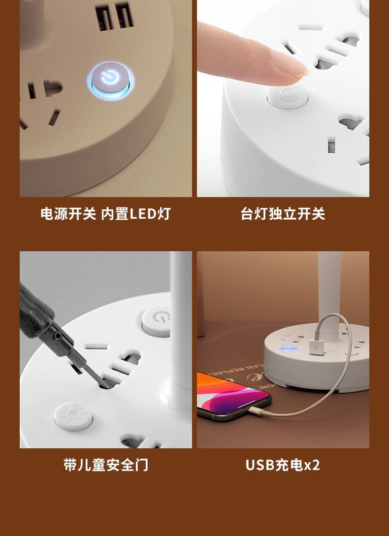 LED eye protection multifunctional lamp socket learning light bedside lamp mobile phone USB charging comes with safety lock power strip