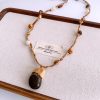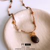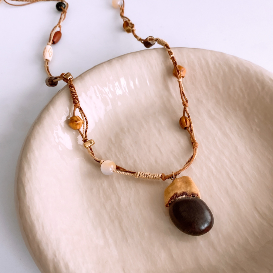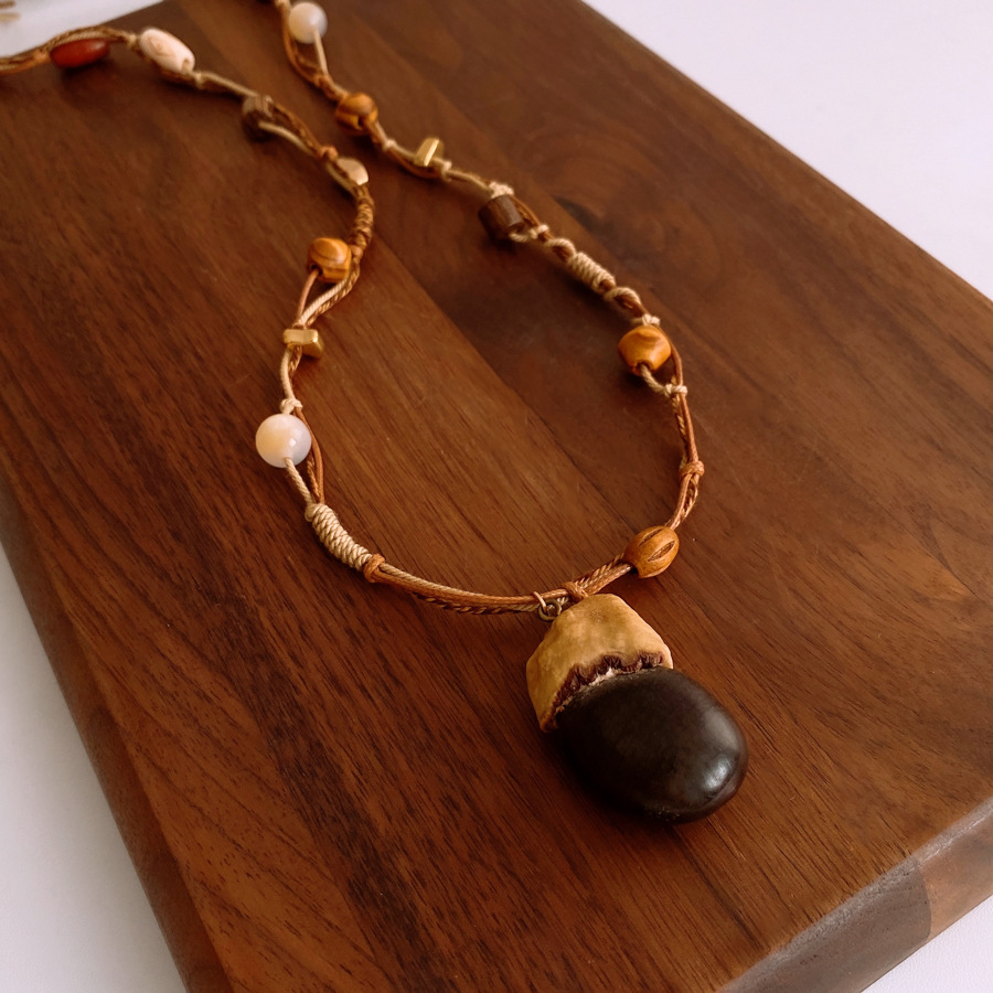 Maillard cotton string Wood Oval beaded necklace retro trendy all-match sweater chain design sense niche necklace