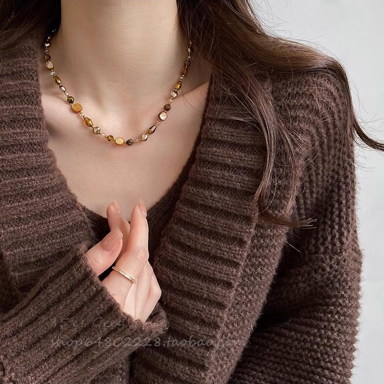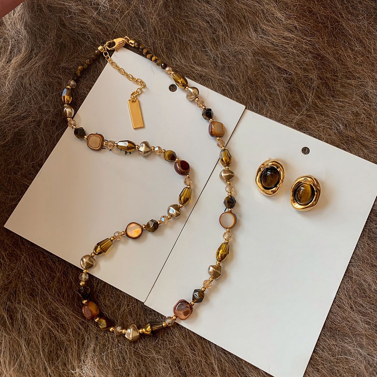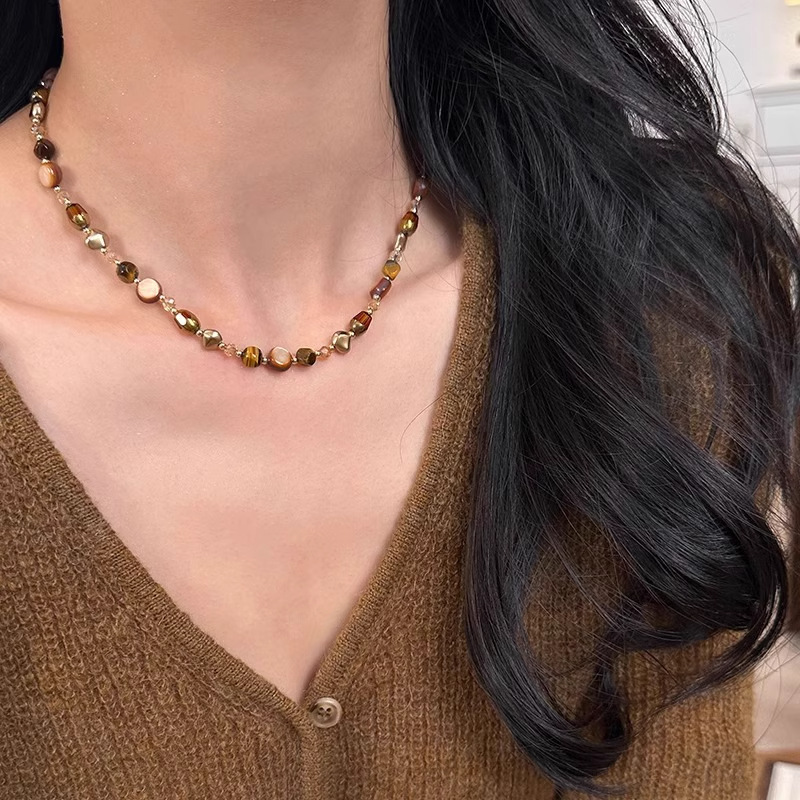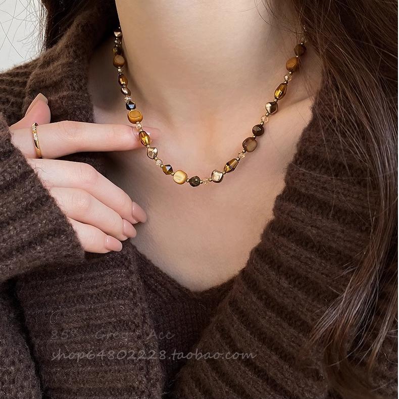 Maillard wear natural Tigereye baroque pearl beaded necklace women’s accessories 2025 new clavicle necklace