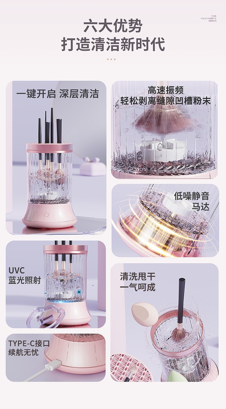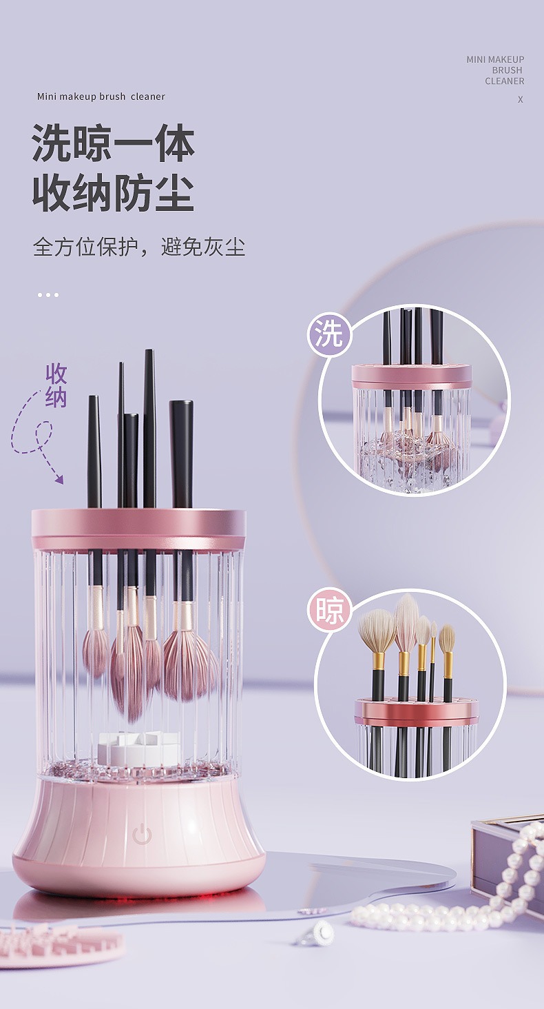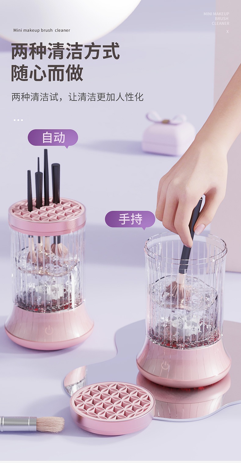 | Color classification | 5 generation makeup cleaner pink, Hot cleaning air drying all-in-one machine, 4 Generation makeup cleaner purple, Electric makeup brush cleaner |