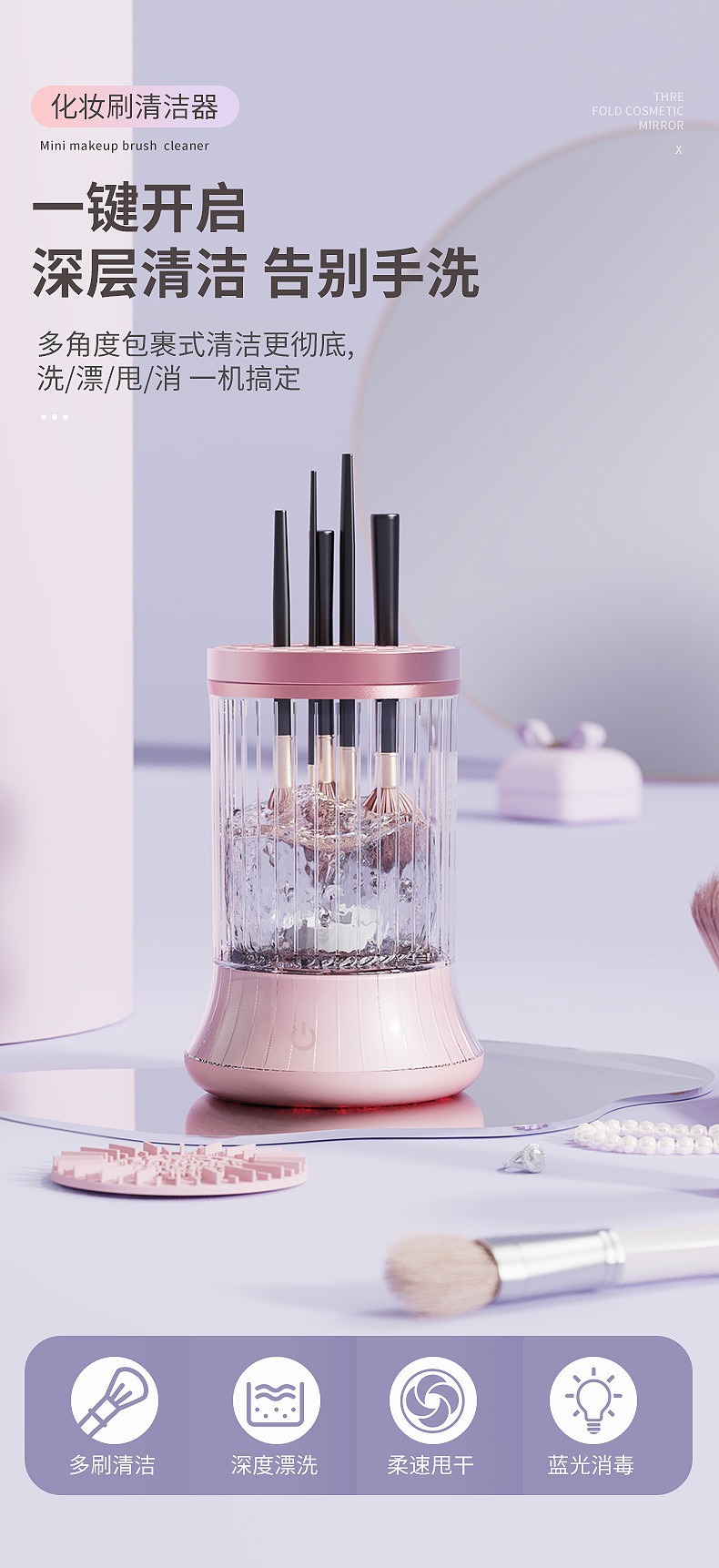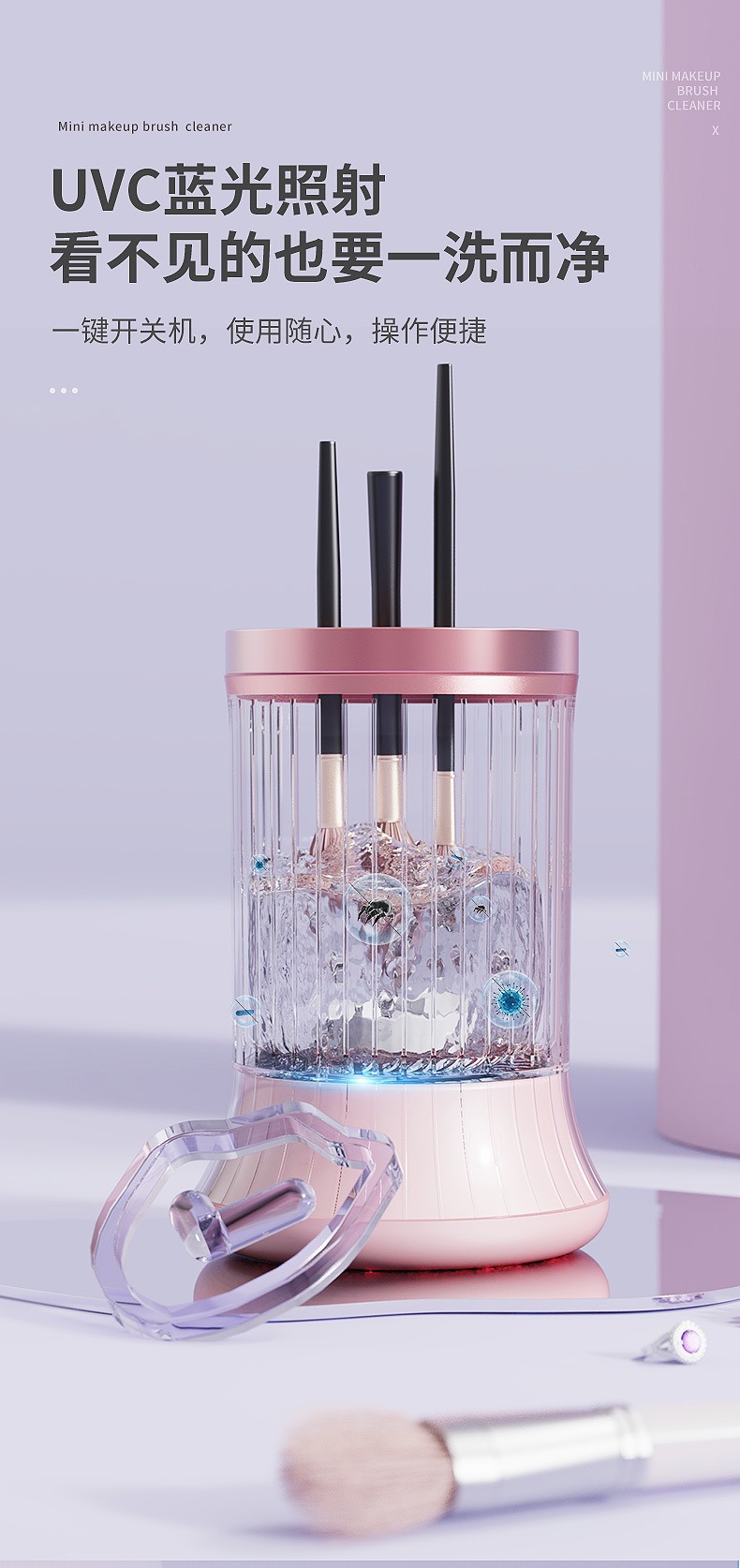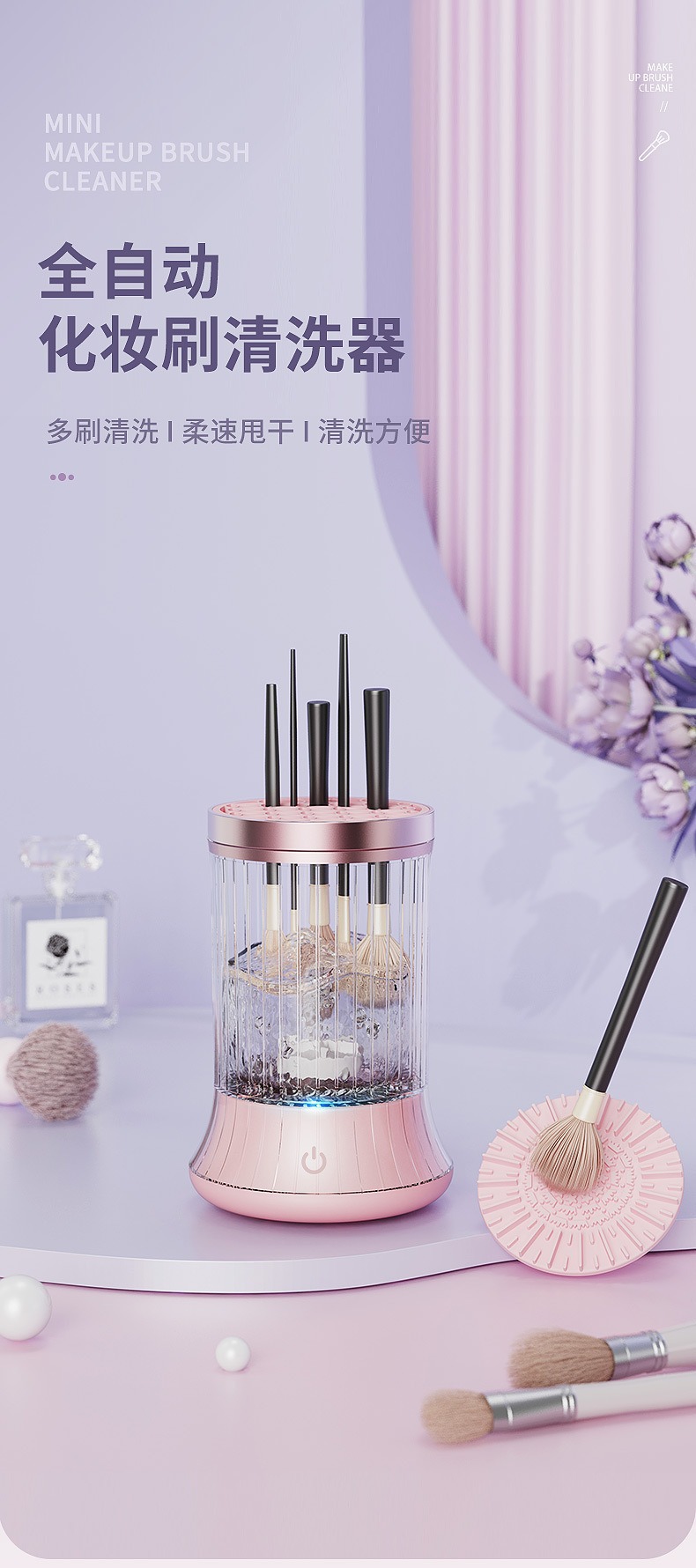 | Color classification | 5 generation makeup cleaner pink, Hot cleaning air drying all-in-one machine, 4 Generation makeup cleaner purple, Electric makeup brush cleaner |