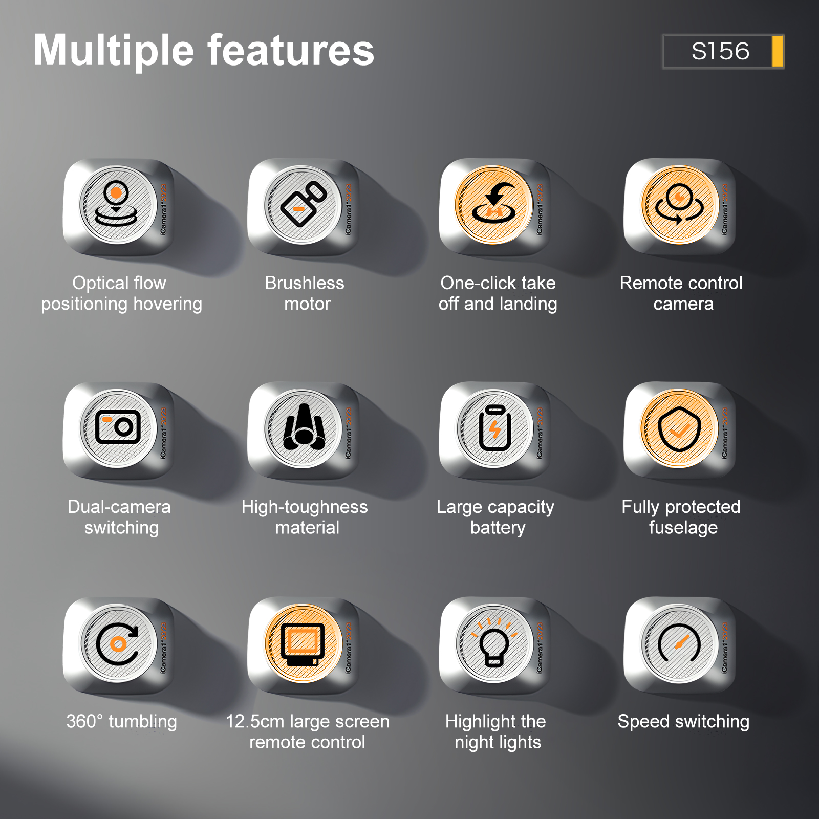 Height Hold Mode,one key takeoff/landing, rise and fall, forward and backward, left and right side flight, steering, headless mode (camera features: gesture photography, video, headless mode, emergency stop, trajectory flight, gravity sensing, music, 50X zoom, automatic photography)"