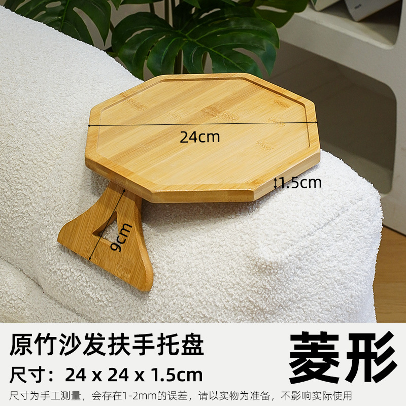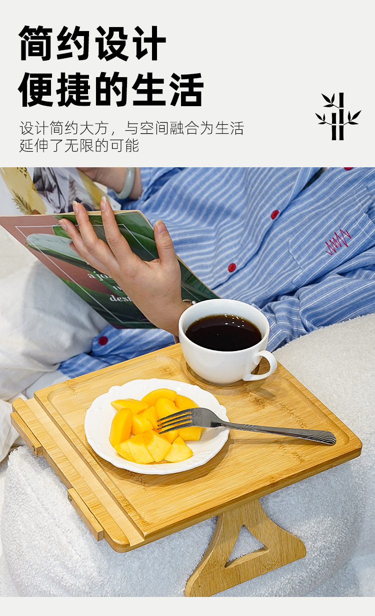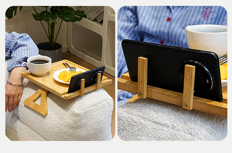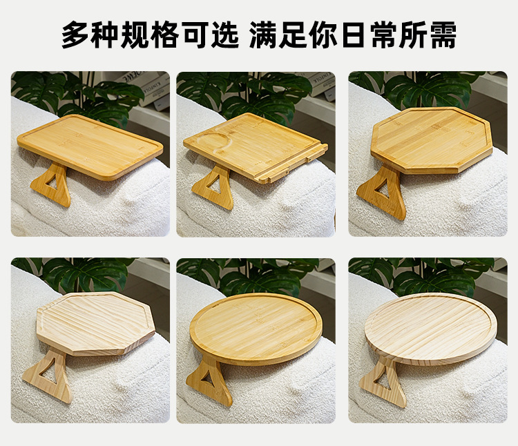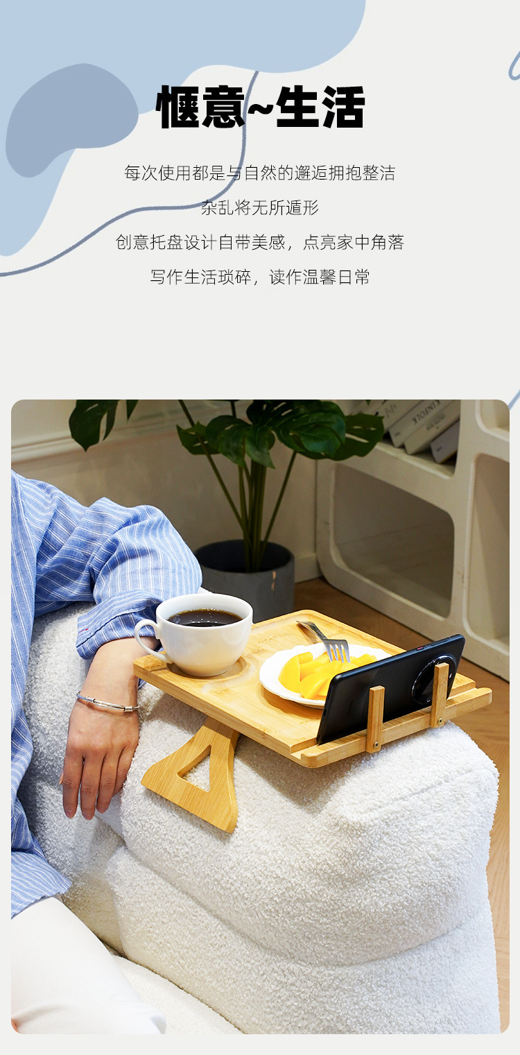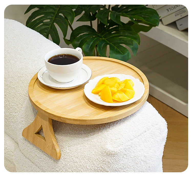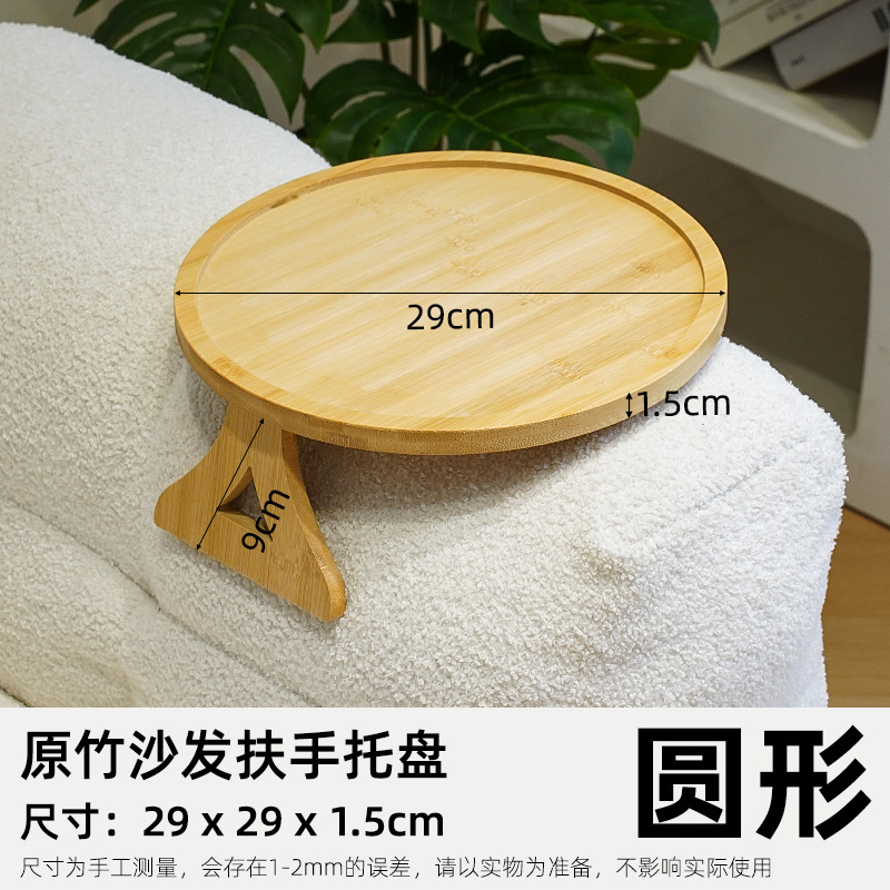 Original bamboo color lazy sofa handrail tray portable foldable sofa handrail round tray sofa