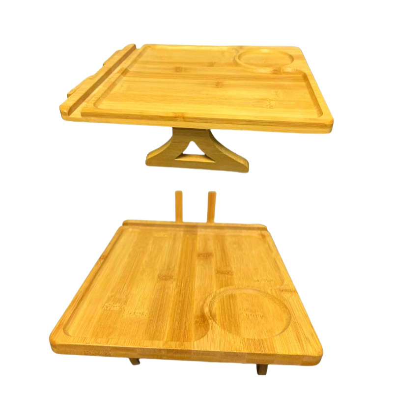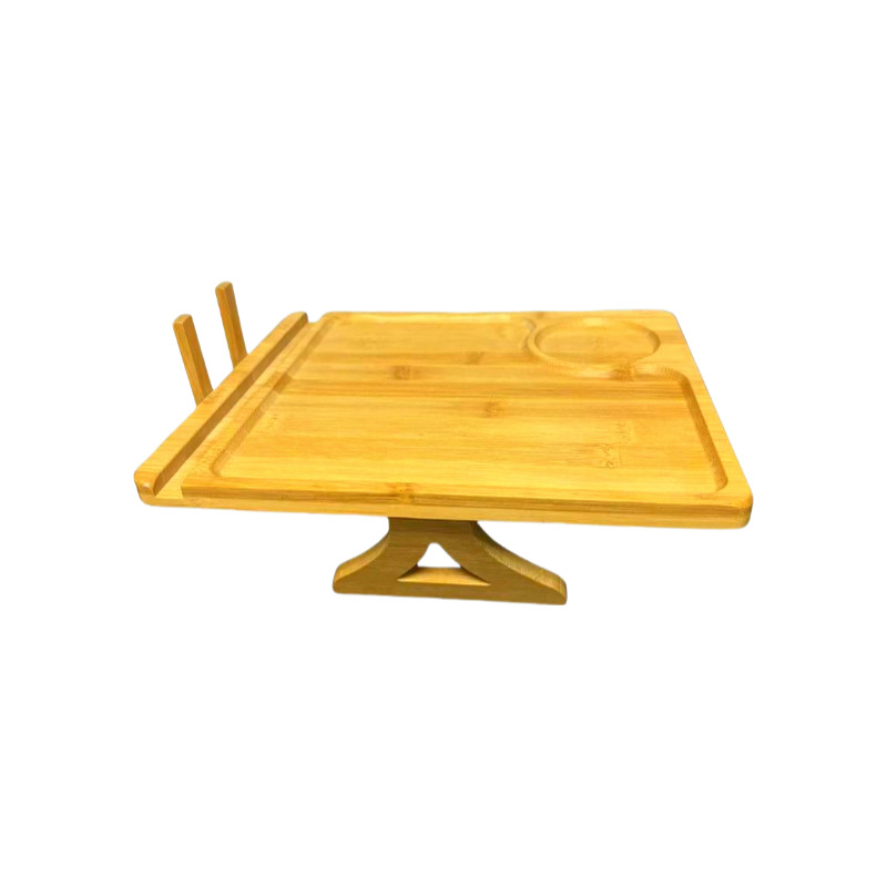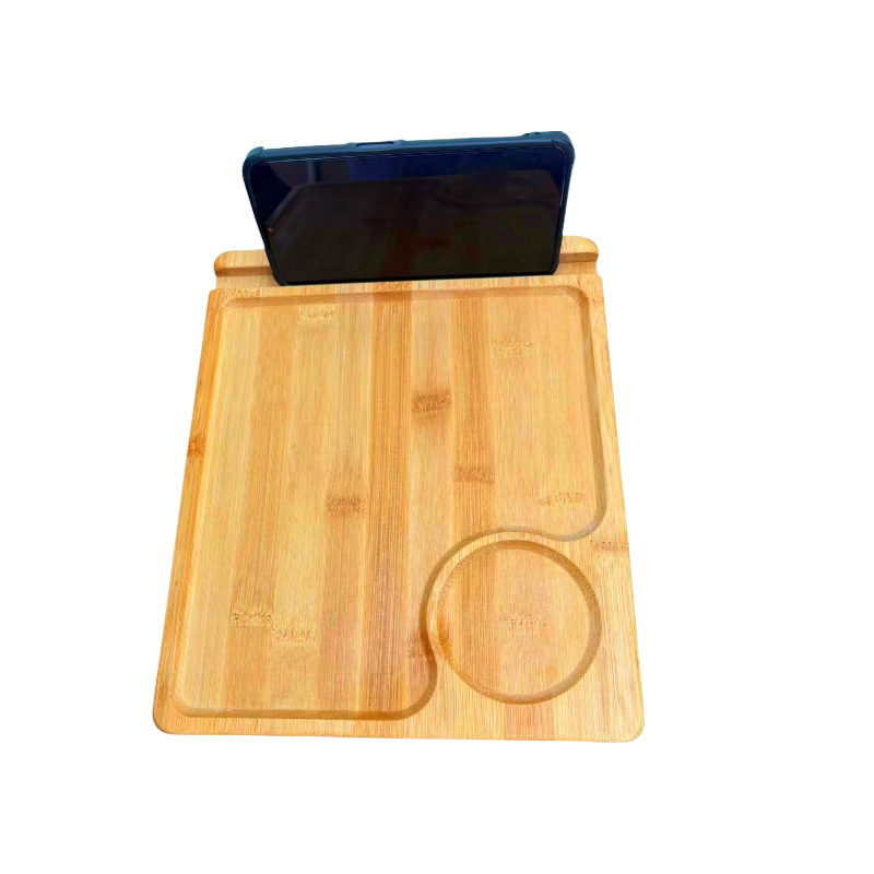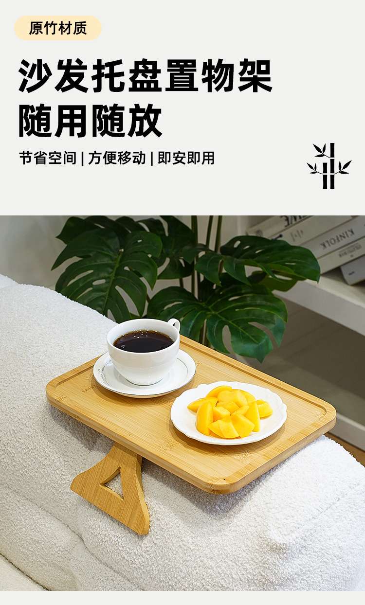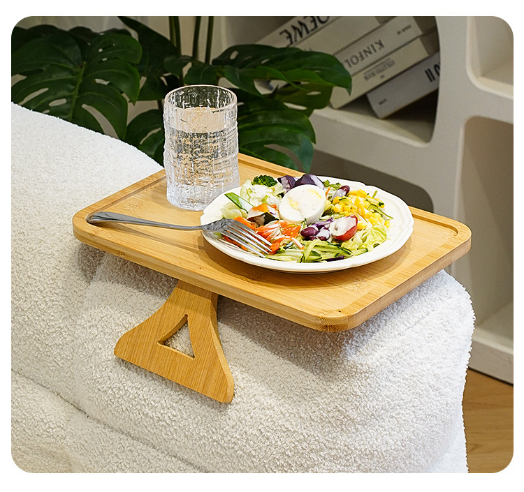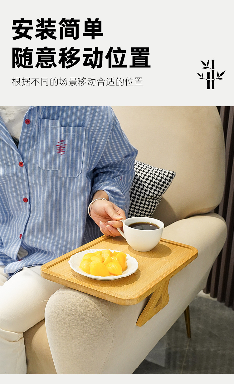 Original bamboo color lazy sofa handrail tray portable foldable sofa handrail round tray sofa