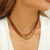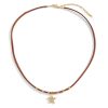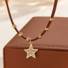 Retro style leather rope round beads Maillard necklace light luxury trendy design five-pointed star pendant sweater chain