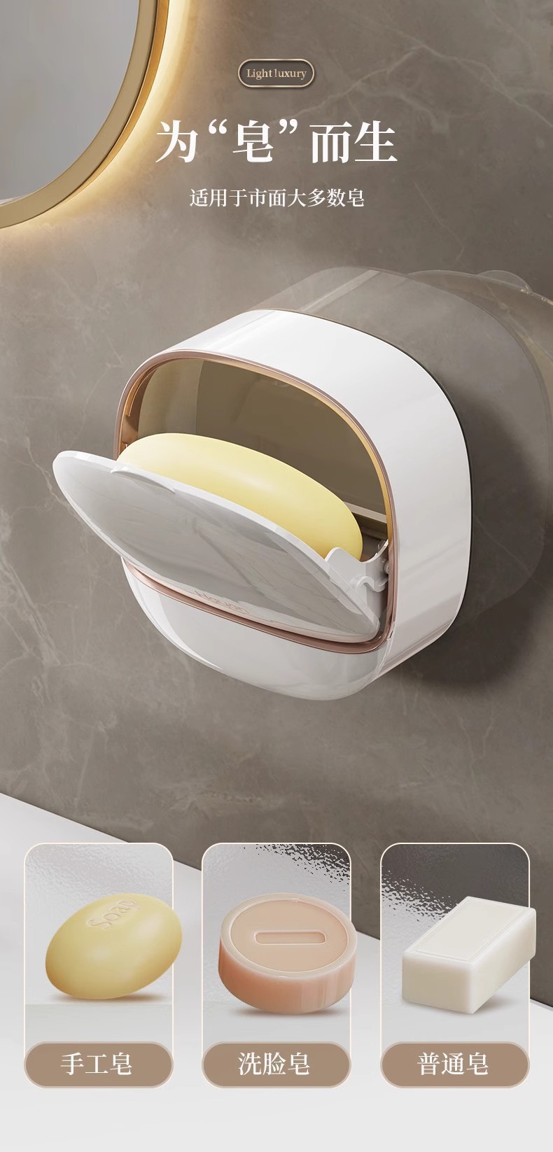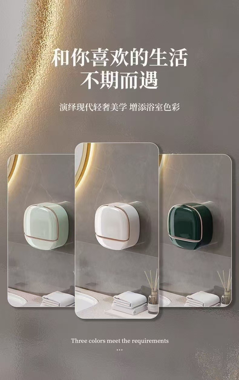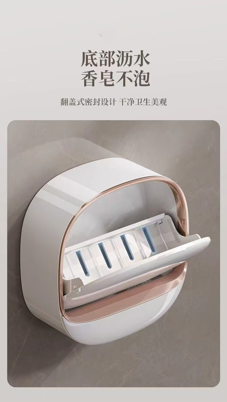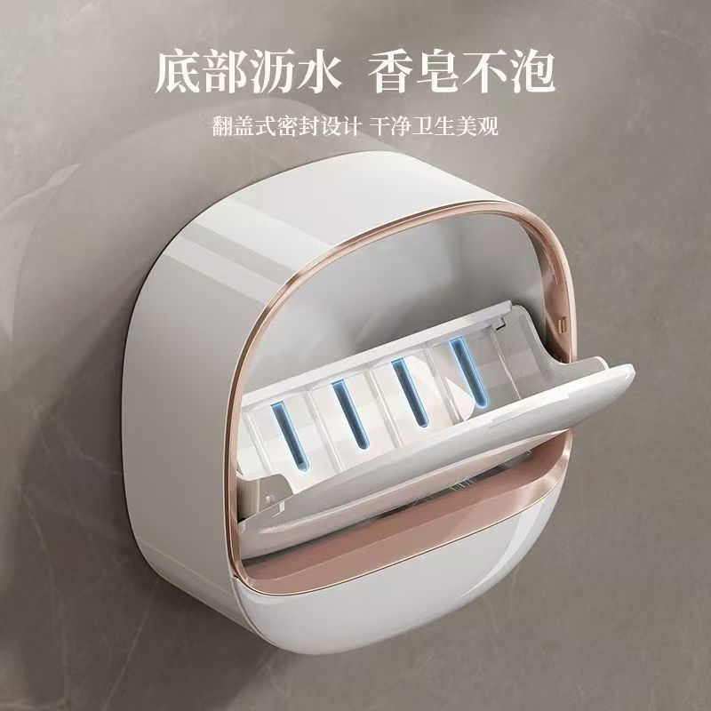 Soap Dish punch-free wall-mounted household soap boxes soap dish high-end drain with cover light luxury toilet soap rack