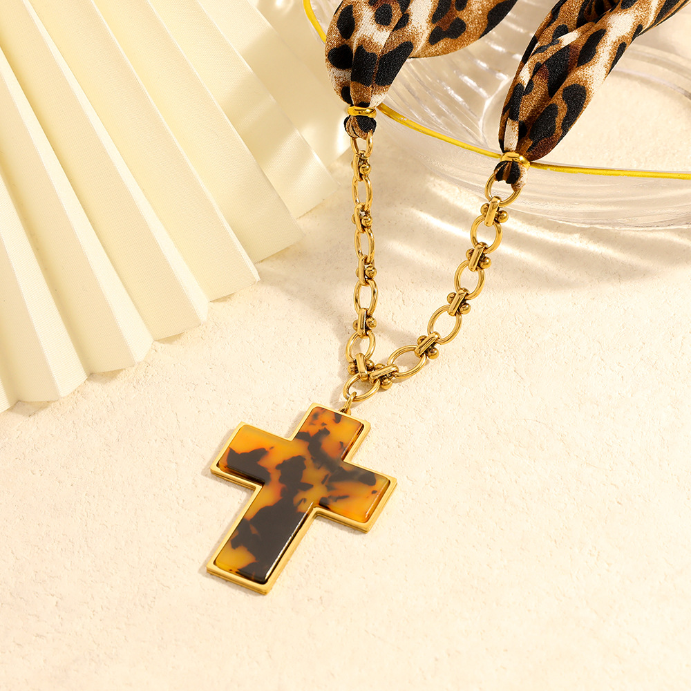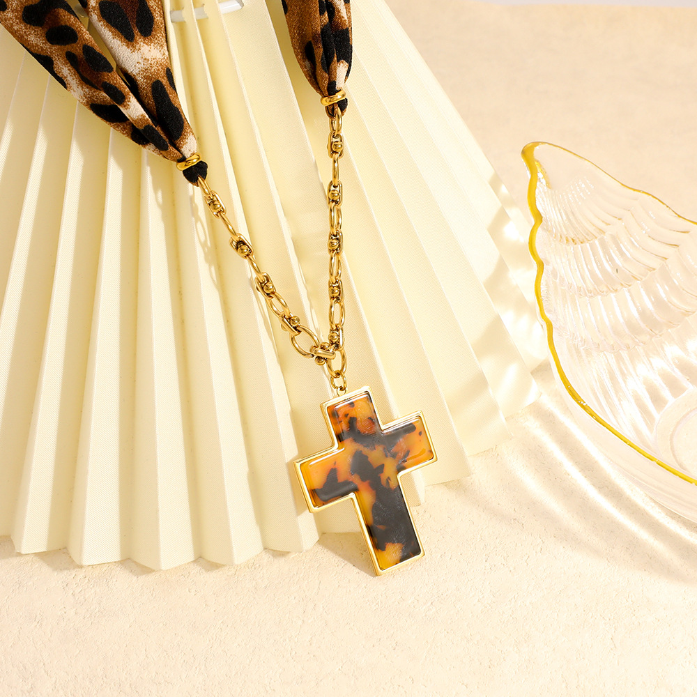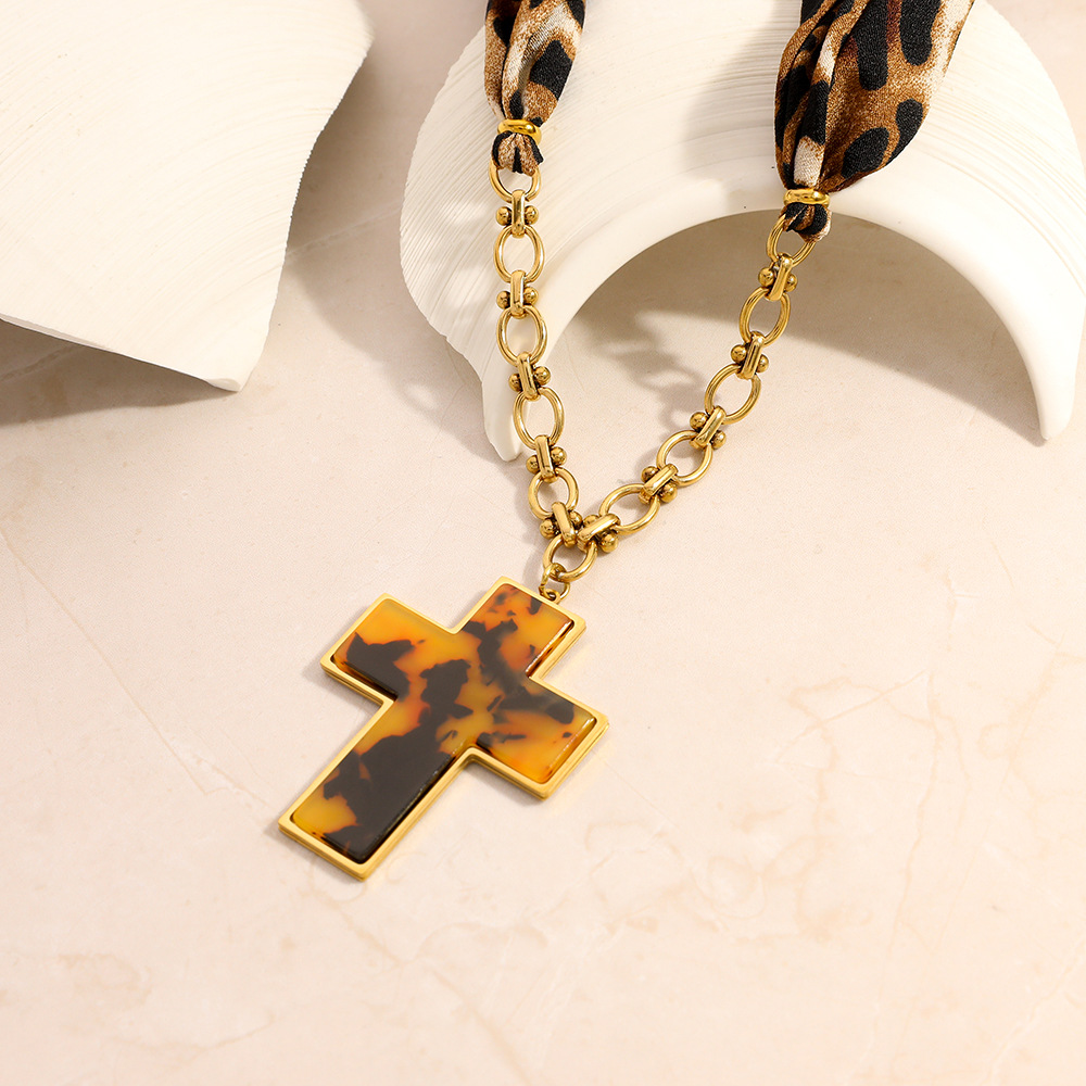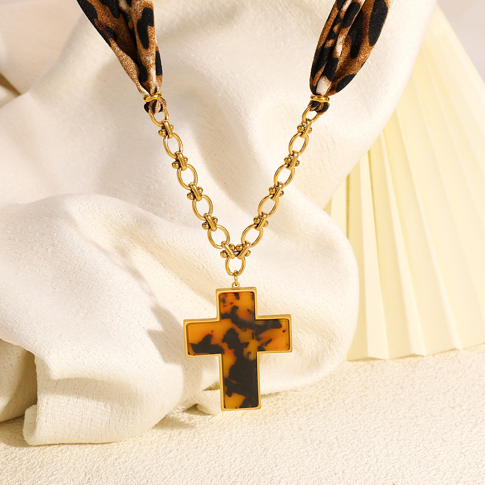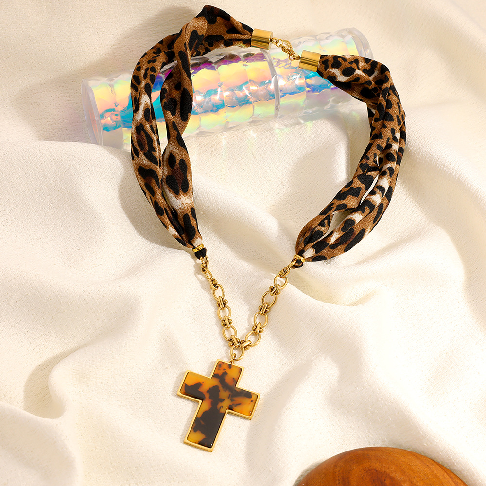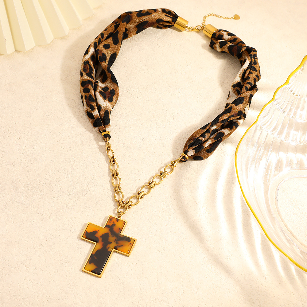 Stainless steel necklace large leopard cross simple sexy style silk scarf