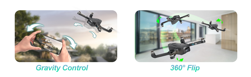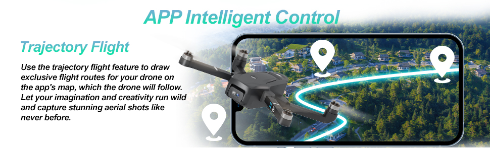 5. More Intelligent Flight Functions: 360° flip function can show the acrobatic performance of the flying ace and make the flying experience more exciting. Trajectory Flight Function: Just draw the desired flight trajectory on the APP screen, and the drone will fly intelligently according to the set route. Gravity control function: Just gently swing the mobile phone, the drone will follow the direction of the mobile phone.