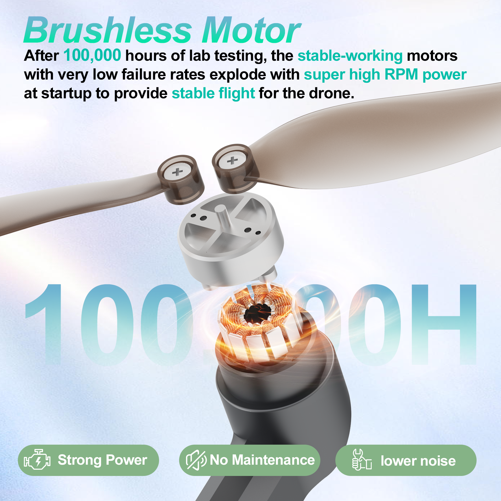 1. Equipped with Brushless Motor: This adult camera drone is equipped with 4 high-performance motors that have been tested for 100,000 hours for smooth operation and very low failure rate, which saves you from future maintenance costs. quiet and powerful.